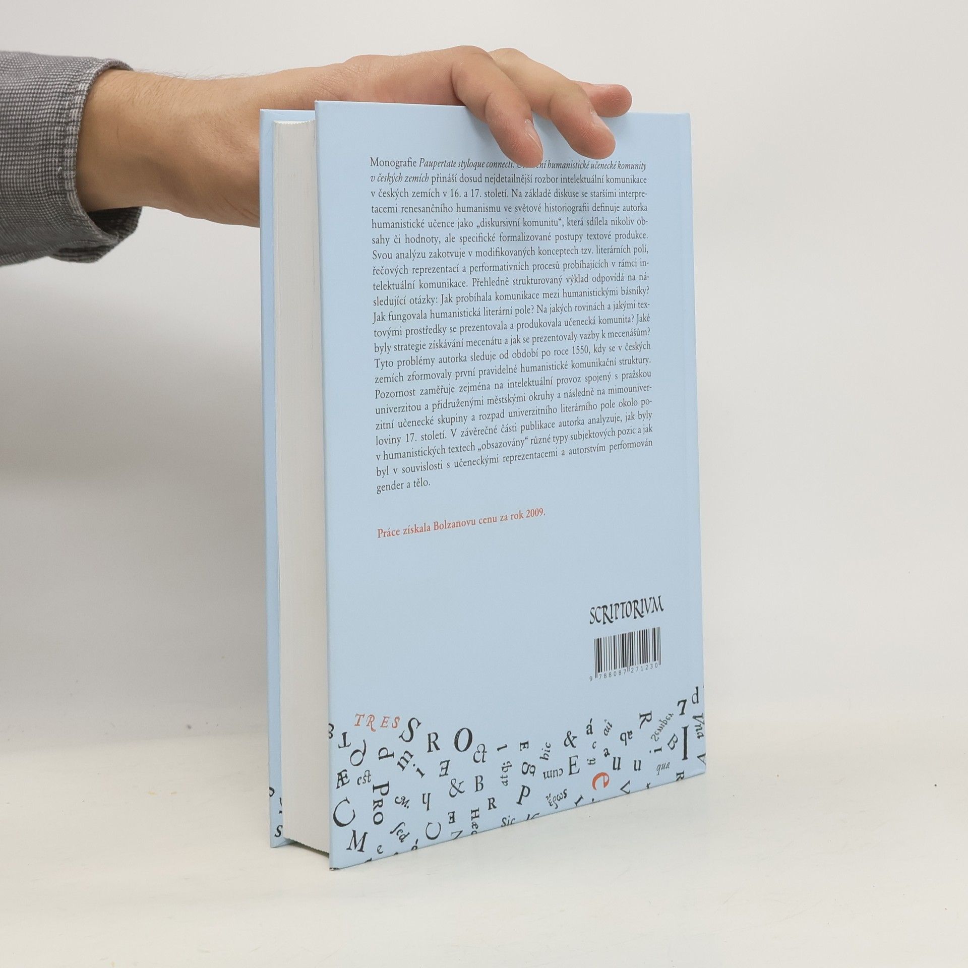Původní důkladná monografie, v níž autorka analyzuje tvorbu českých latinsky píšících humanistů jako formalizovaný diskursivní modus. Dále analyzuje humanistické literární pole v českých zemích a textové utváření učenecké komunity. Práce tak přináší razantní odklon od všech dosavadních interpretací raně novověkého humanismu v české vědě (jež zároveň také analyzuje na pozadí jejich metanarativních předpkladů) a znamená zásadní konceptuální průlom. Kniha je částečně přepracovanou verzí disertační práce obhájené roku 2009 na Fakultě humanitních studií UK v Praze, za niž byla autorka odměněna Bolzanovou cenou pro rok 2009, udělovanou rektorem UK.