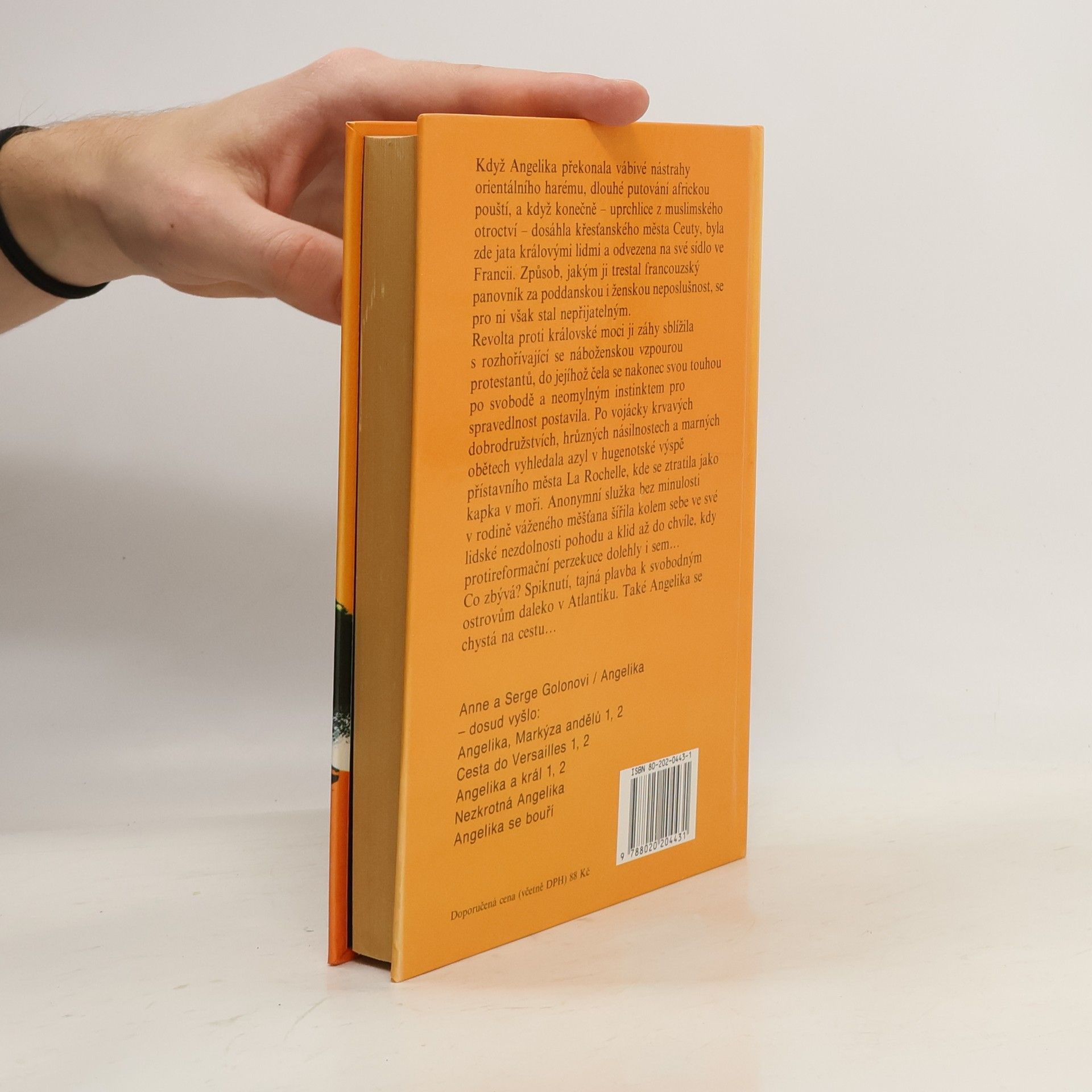 Revolta Angeliky proti královské moci ji sblížila s rozhořívající se náboženskou vzpourou protestantů, do jejíhož čela se nakonec svým neomylným instinktem pro spravedlnost postavila. Po krvavých dobrodružstvích v La Rochelle se ztratila jako kapka v moři - anonymní služka bez minulosti v rodině váženého měšťana až do chvíle, kdy protireformační perzekuce dolehly i sem... Co zbývá? Spiknutí a tajná plavba k svobodným ostrovům daleko v Atlantiku... Z francouzského originálu „Angélique se révolte“ , vydaného nakladatelstvím Opera Mundi, Paris 1960, přeložila Hana Müllerová. Vydání první.