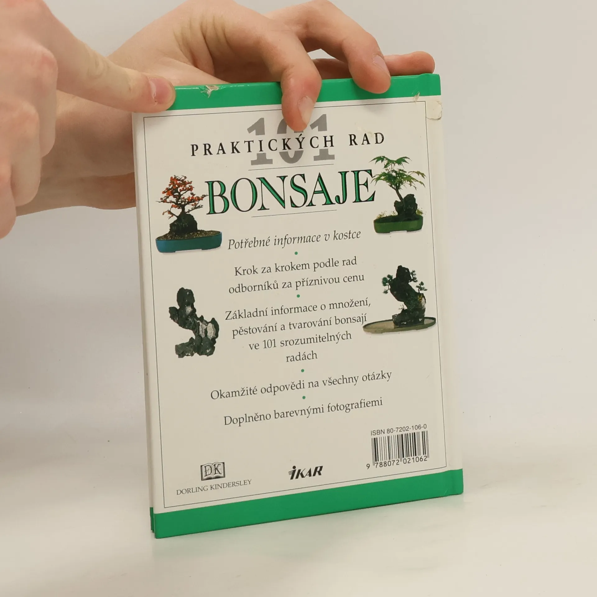 101 praktických rad Publikace přináší základní informace o pěstování, množení, přesazování a tvarování venkovních bonsají. V závěru je představeno 19 druhů stromů a keřů vhodných k bonsajové úpravě.