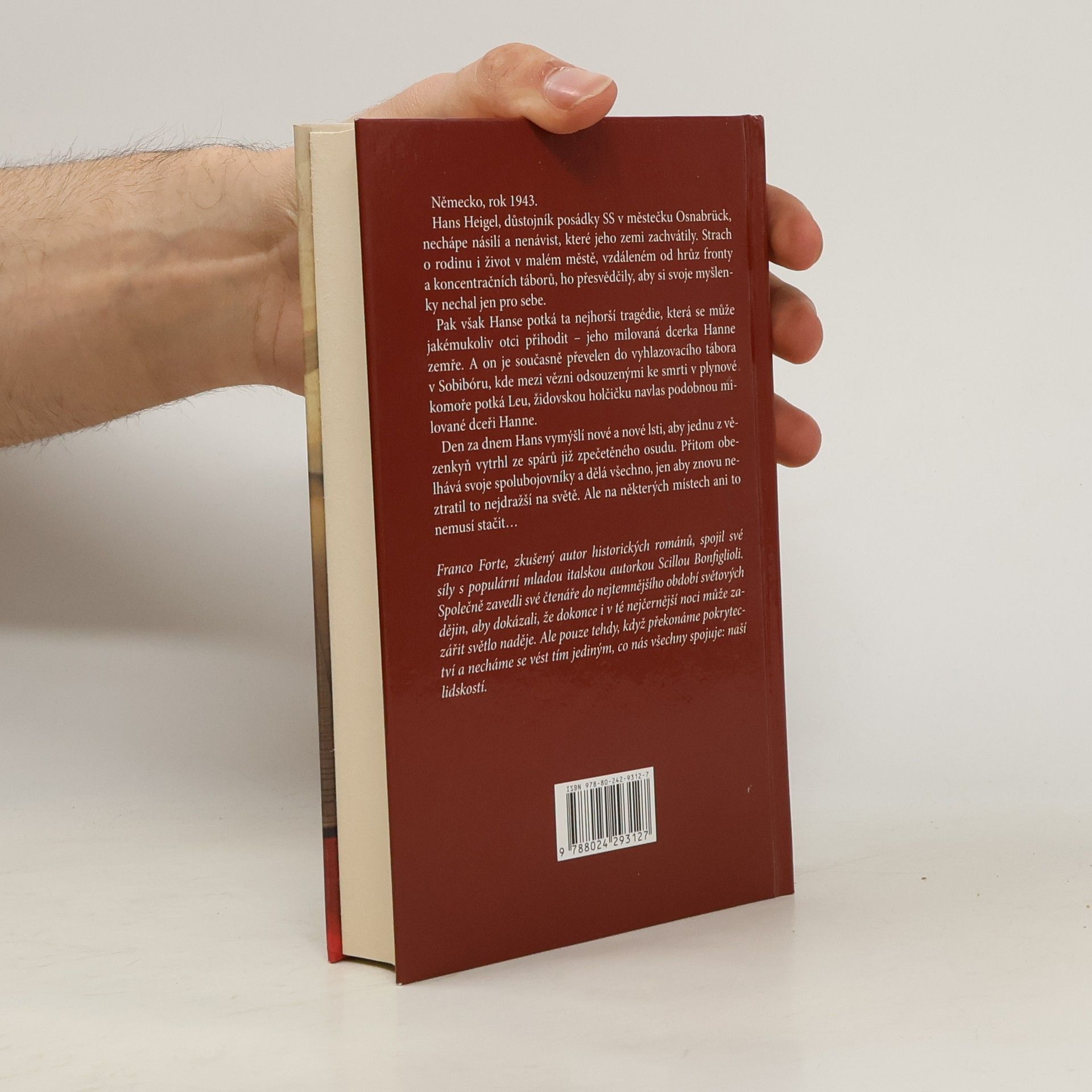 Román dvojice italských autorů se odehrává ve vyhlazovacím táboře a vypráví o setkání židovské holčičky a důstojníka SS, v němž ještě neodumřely poslední zbytky lidskosti. Německo, 1943. Hans Heigel, důstojník posádky SS v městečku Osnabrück, nechápe agresivitu, s níž se jeho země vzpamatovala z první světové války. Přesto ho strach z postihu jeho rodiny i život v malém městě, vzdáleném od hrůz fronty a koncentračních táborů, přesvědčily, aby si svoje myšlenky nechal pro sebe. Důležitější je starat se o manželku Ingrid a milovanou dceru Hanne. Jak dlouho však může člověk přehlížet vlastní hodnoty jen proto, aby mohl vést nudný nerušený život? Hans to pochopí, když ho potká ta nejhorší tragédie, která se může přihodit otci, a současně zjistí, že byl převelen do vyhlazovacího tábora v Sobibóru. Najednou už nemůže zavírat oči před hrůznými skutky, kterými se špiní pověst Německa. O to víc, když mezi vězni odsouzenými ke smrti v plynové komoře potká Leu, židovskou holčičku navlas podobnou svojí dceři Hanne. Nakladatelská anotace. Kráceno.