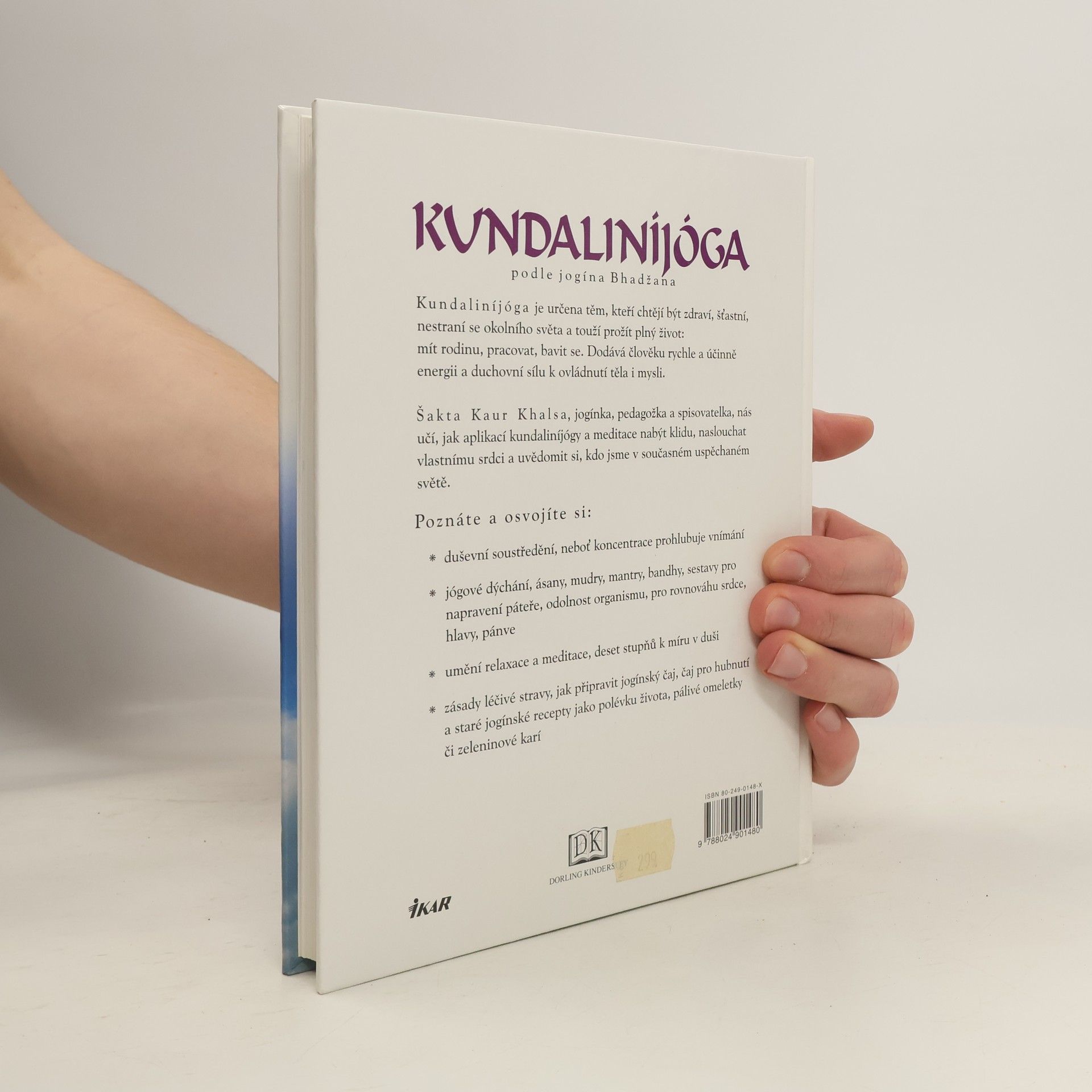 Podtitulek zní - harmonie těla a duše. Kniha je určena těm, kteří chtějí být zdraví, šťastní, nestraní se okolního světa a touží prožít plný život. Poznáme duševní soustředění, jógové dýchání, ásany, mudry, mantry, bandhy, sestavy pro napravení páteře, odolnost organismu, pro rovnováhu srdce, hlavy, pánve, umění relaxace a meditace, zásady léčivé stravy, jak připravit jogínský čaj, čaj pro hubnutí a staré jogínské recepty jako polévku života, pálivé omeletky či zeleninové karí...Tištěno na křídovém papíře, doplněno fotografiemi.
