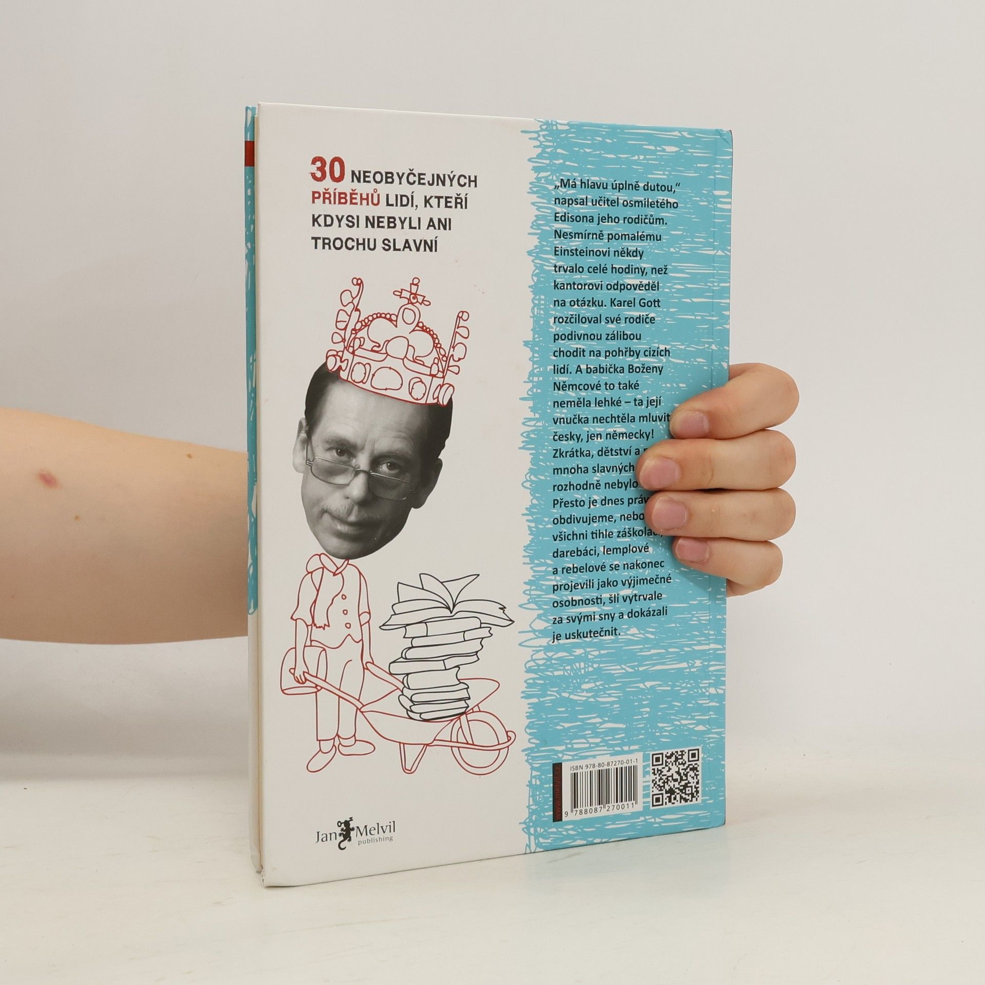 Neobyčejná kniha pro mládež, ale i dospělé čtenáře, přibližuje dětství a mládí 30 špatných žáků, darebáků, lemplů a rebelů, kteří to nakonec dotáhli daleko. „Má hlavu úplně dutou,“ napsal například Edisonův učitel jeho matce. Pomalému Einsteinovi někdy trvalo celé hodiny, než kantorovi odpověděl na otázku. Karel Gott rozčiloval své rodiče podivnou zálibou chodit na pohřby cizích lidí. A Božena Němcová – ta zase nechtěla mluvit česky! Kniha obsahuje více než 150 fotografií a ilustrací. Otakar Batlička Alexander Graham Bell Konstantin Biebl Napoleon Bonaparte Paul Cézanne Mikuláš Dačický z Heslova Charles Darwin Walt Disney Antonín Dvořák Thomas Alva Edison Albert Einstein Emil Filla Alberto Vojtěch Frič Josef Václav Frič Karel Gott Václav Havel Charlie Chaplin Jaromír Jágr John Lennon Gregor Johann Mendel Gustav Meyrink Božena Němcová Karel Poláček Bedřich Smetana Josef Sudek Max Švabinský Toyen Leonardo da Vinci Petr Vok z Rožmberka Jan Eskymo Welzl