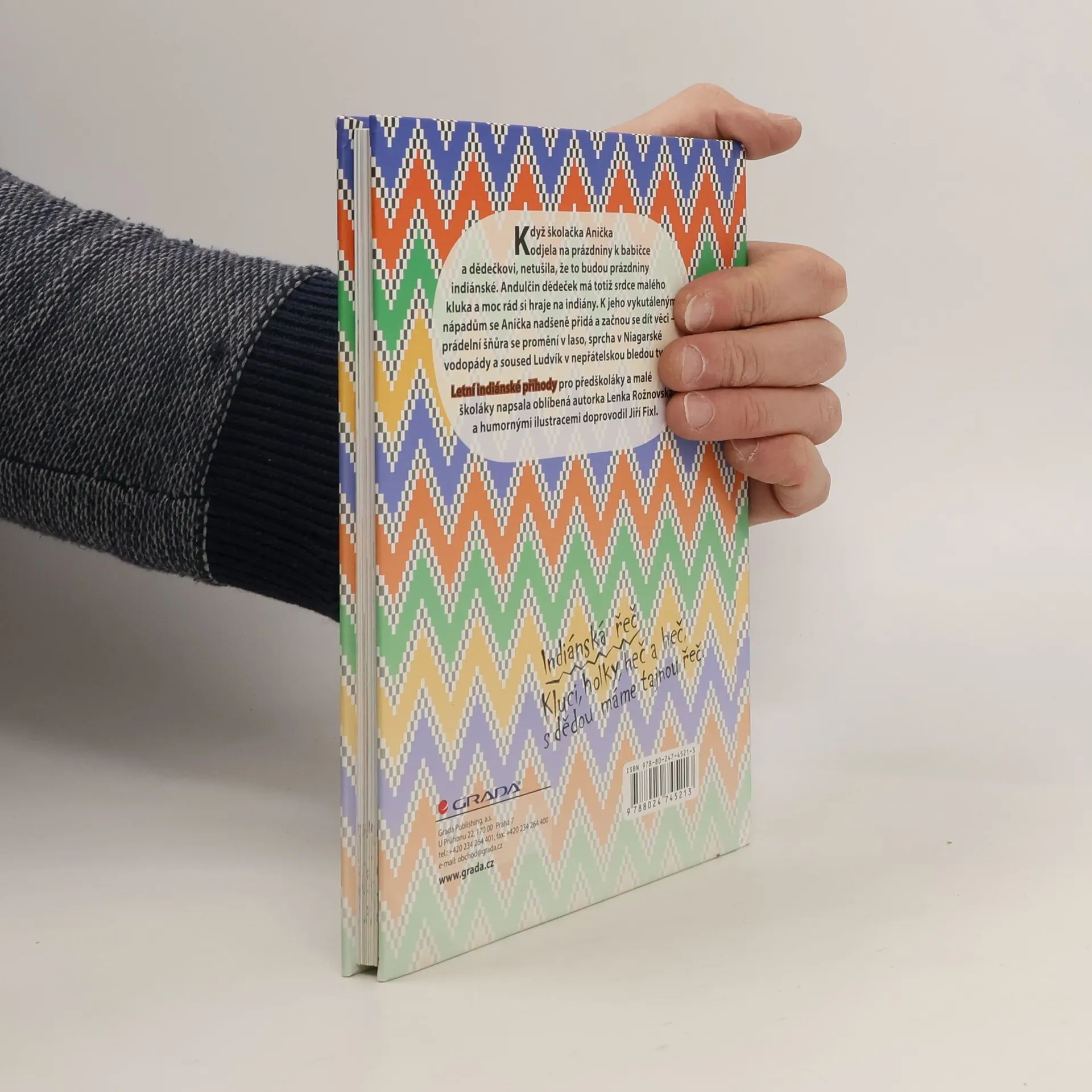 Když školačka Anička odjela na prázdniny k babičce a dědečkovi, netušila, že to budou prázdniny indiánské. Andulčin dědeček má totiž srdce malého kluka a moc rád si hraje na indiány. K jeho vykutáleným nápadům se Anička nadšeně přidá a začnou se dít věci - prádelní šňůra se promění v laso, sprcha v Niagarské vodopády a soused Ludvík v nepřátelskou bledou tvář. Letní indiánské příhody pro předškoláky napsala oblíbená autorka Lenka Rožnovská a humornými ilustracemi doprovodil Jiří Fixl.