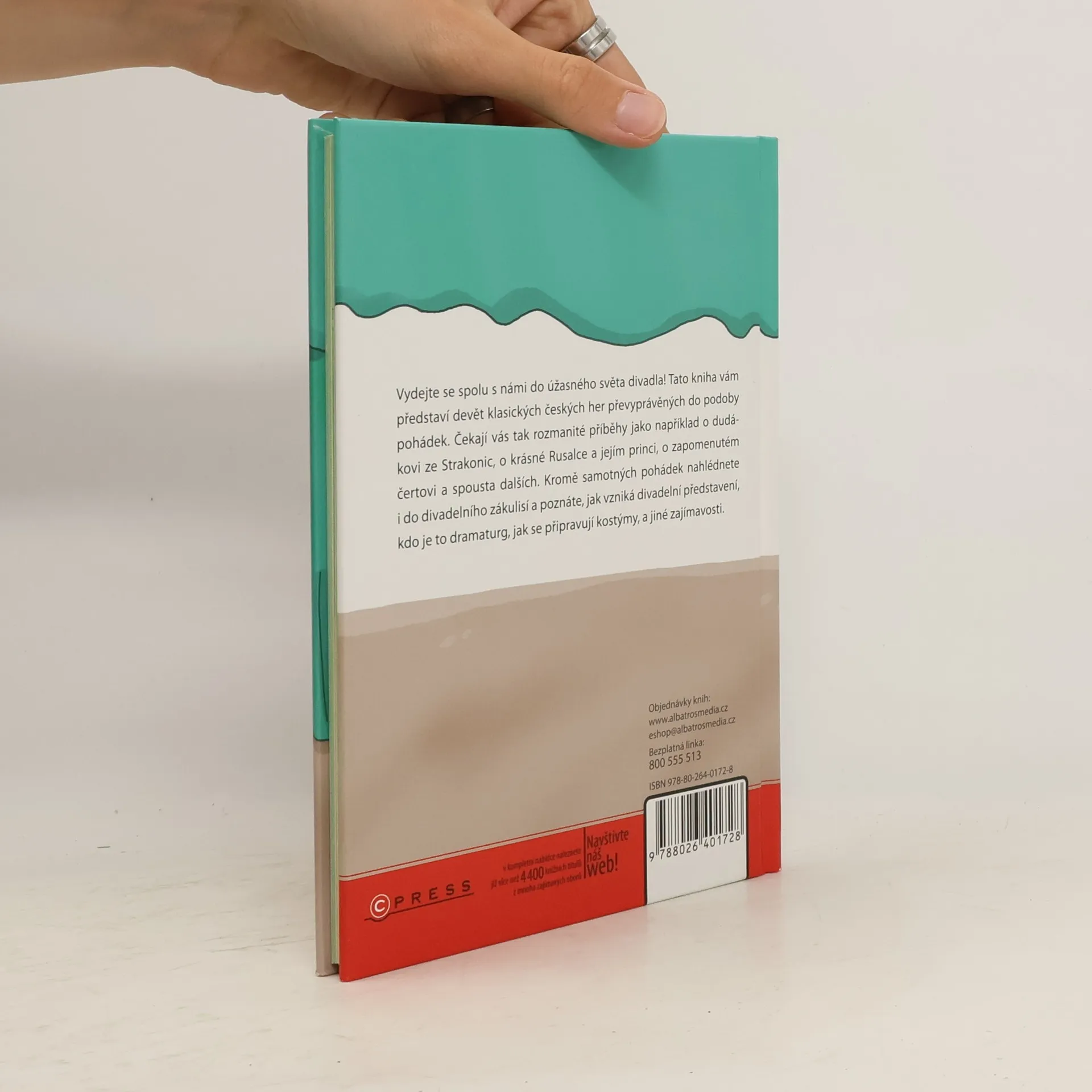 Vydejte se spolu s námi poznávat divadelní svět! Tato kniha vám představí devět klasických českých her převyprávěných do podoby pohádek. Čekají vás tak rozmanité příběhy jako například o dudákovi ze Strakonic, o krásné rusalce a jejím princi, o zapomenutém čertovi a spousta dalších. Kromě samotných pohádek nahlédnete i do divadelního zákulisí a poznáte, jak vzniká takové divadelní představení, kdo je to dramaturg, jak se připravují kostýmy a jiné zajímavosti.