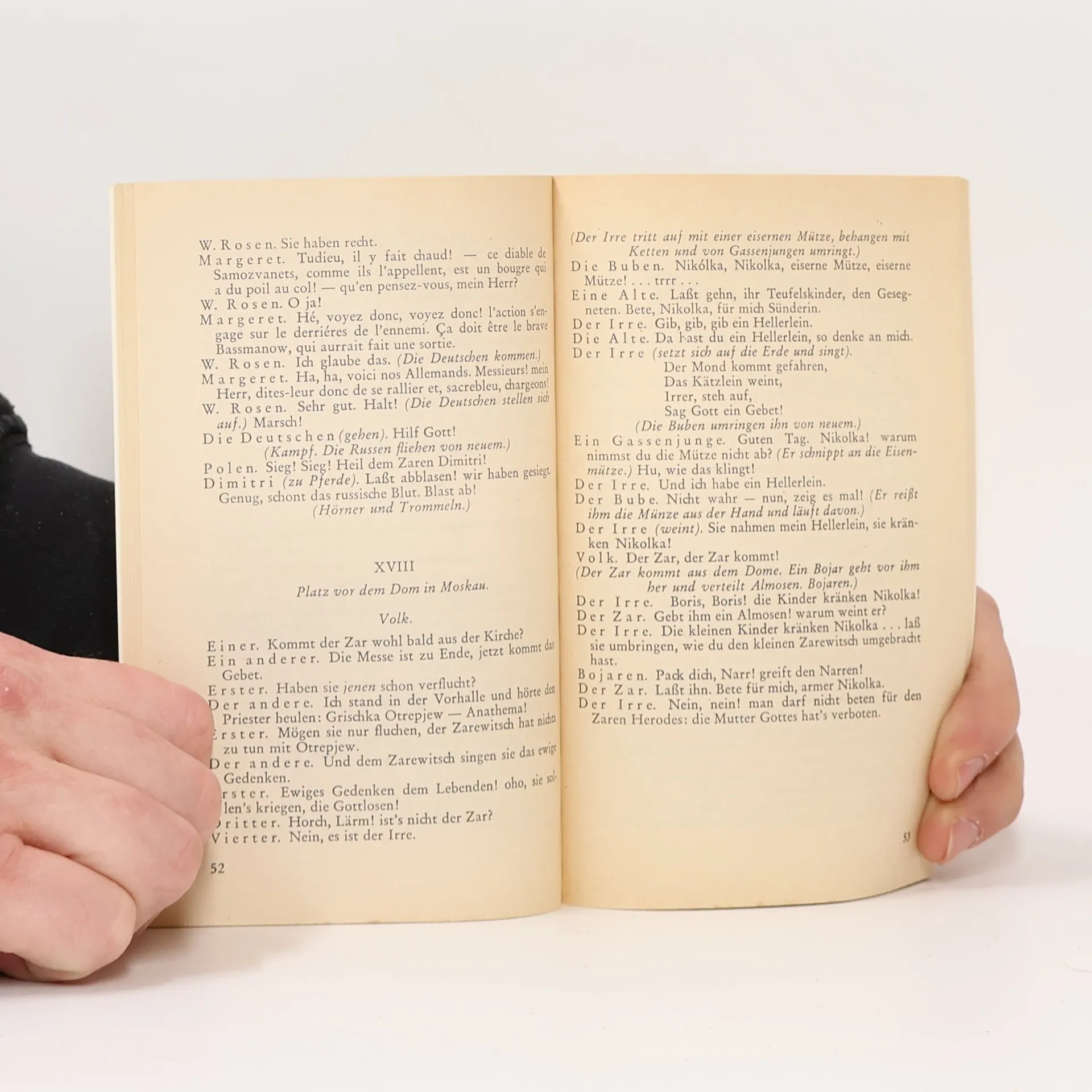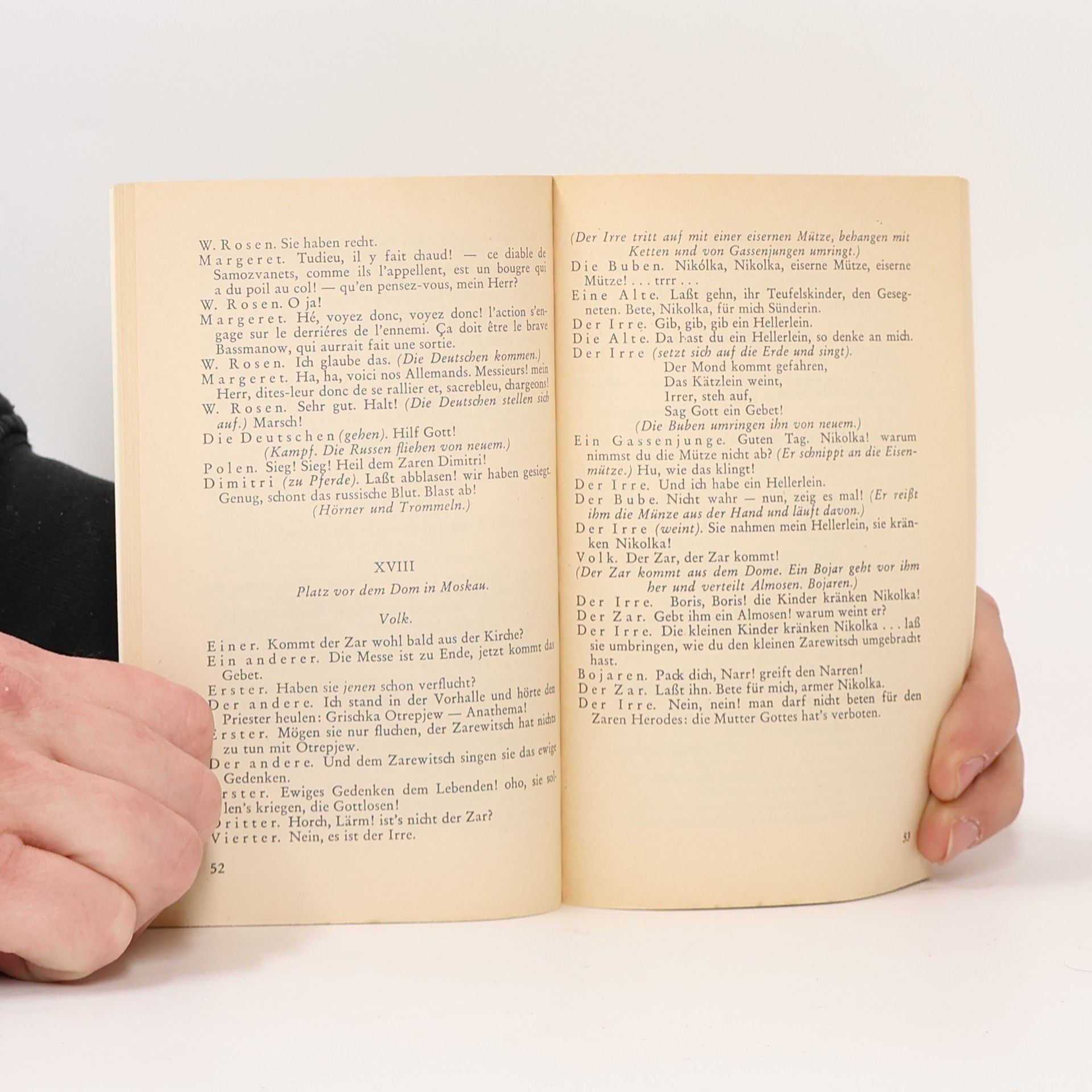 Der Stoff vom »falschen Demetrius«, der sich als russischer Thronfolger ausgab, 1605 nach dem Tod des Zaren Boris Godunow in Moskau einzog und dort gekrönt wurde, regte schon Schiller zu einem Drama an. Puschkin gestaltete ihn in seinem Schauspiel Boris Godunow (1825) aus dem Geist und im Stil Shakespearescher history plays zu einer mitreißenden Szenenfolge über die Verlockung der Macht, über Ohnmacht und Wankelmut des Volkes. Nach dem Text von Puschkin schrieb Mussorgskij 1868-71 seine gleichnamige Oper.