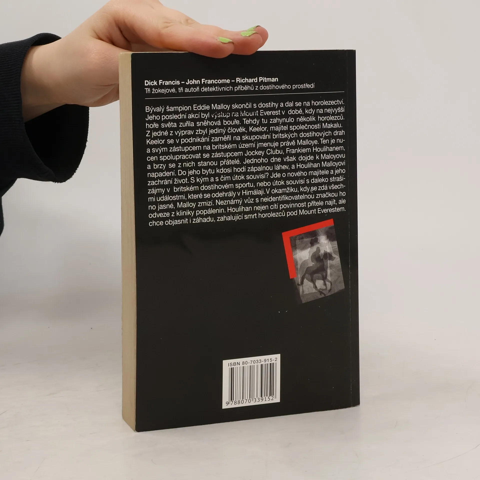Detektivní příběh z dostihového prostředí. Bývalý šampion Eddie Malloy skončil s dostihy a dal se na horolezectví. Jeho poslední akcí byl Výstup na Mount Everest v době, kdy na nejvyšší hoře světa zuřila sněhová bouře. Tehdy tu zahynulo několik horolezců. Z jedné z výprav zbyl jediný člověk, Keelor, majitel společnosti Makalu. Keelor se v podnikání zaměřil na skupování britských dostihových drah a svým zástupcem na britském území jmenuje právě Malloye. Ten je nucen spolupracovat se zástupcem Jockey Clubu, Frankiem Houlihanem, a brzy se z nich stanou přátelé. Jednoho dne však dojde k Malloyovu napadení. Do jeho bytu kdosi hodí zápalnou láhev, a Houlihan Malloyovi zachrání život. S kým a s čím útok souvisí? Jde o nového majitele a jeho zájmy v britském dostihovém sportu, nebo útok souvisí s daleko straší mi událostmi, které se odehrály v Himálaji? V okamžiku, kdy se zdá všechno jasné, Malloy zmizí. Neznámý vůz s neidentifikovatelnou značkou ho odveze z kliniky popálenin. Houlihan nejen cítí povinnost přítele najít, ale chce objasnit i záhadu, zahalující smrt horolezců pod Mount Everestem.