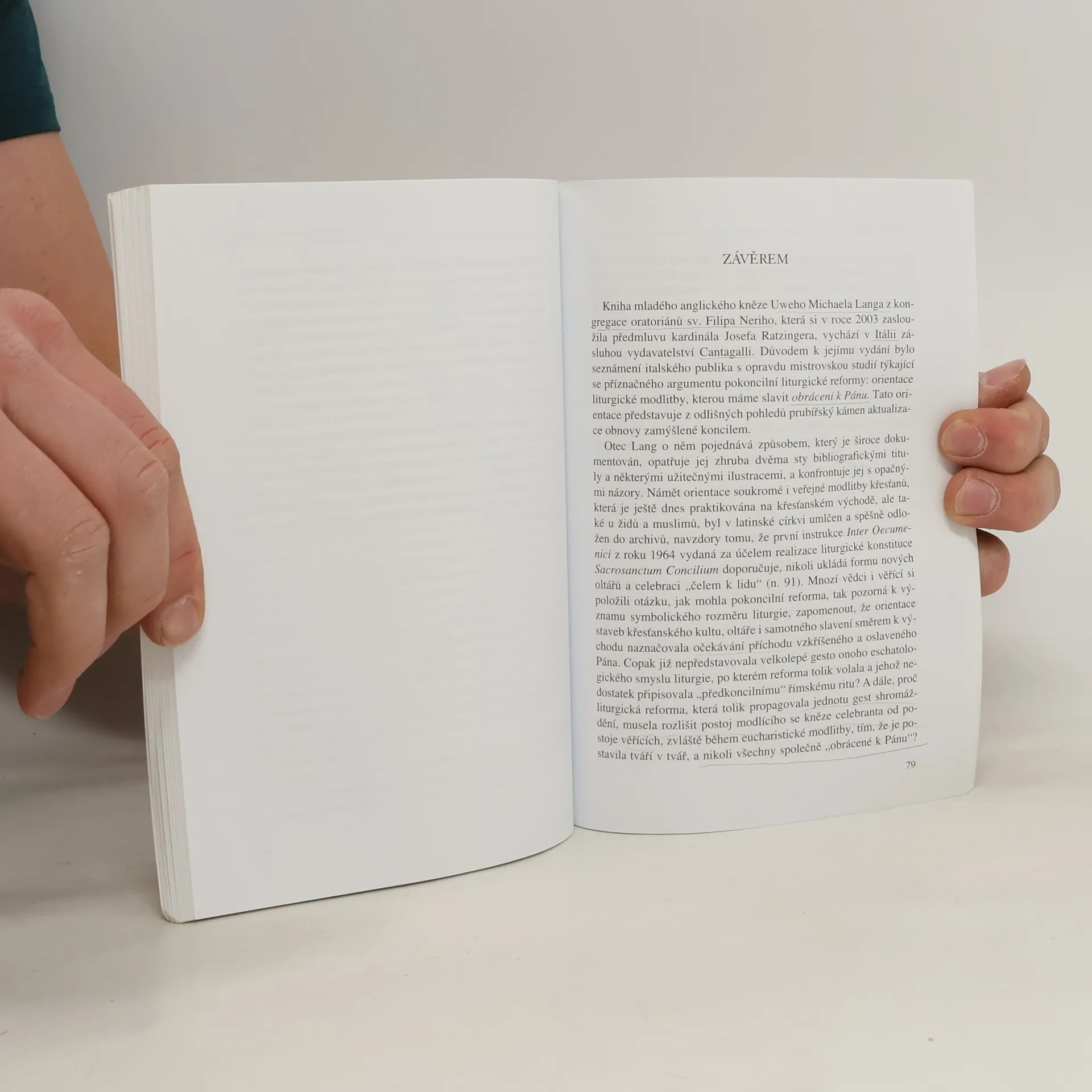 Kniha Obráceni k Pánu představuje historickou a teologickou diskusi ve prospěch tradiční a společné liturgické orientaci modlitby, která je známa jako "obrácení k východu" a chce být příspěvkem k aktuální diskusi ohledně katolické liturgie. Langova kniha, zjevně objektivní a absolutně vzdálená polemice, je drahocennou průvodkyní v současné situaci. Předmluva: Joseph Ratzinger