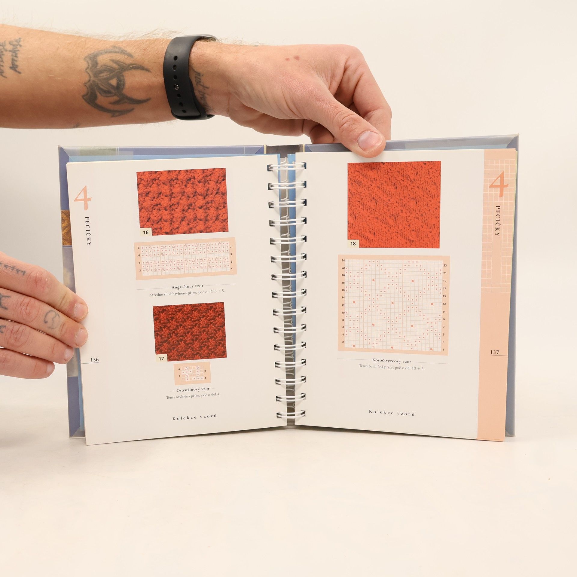 Příručka v praktické, kroužkované vazbě vás provede širokou škálou vzorů sedmi různých typů pletení a kapitolou o zdobení, přinášející pro každý z nich ukázky použití korálků a flitrů. Pro absolutní začátečnice jsou zde připraveny názorné a srozumitelné nákresy, nemusíte se tedy obávat návodů popisujících očko po očku. Titul zahrnuje kapitolu Jak knihu používat, ve které je vysvětlen systém čtení nákresů. Následují Základy ručního pletení, kde se autorka zabývá nejen přízí, symboly na přebalu přadena, ale i jehlicemi a ostatními pomůckami. Mezi další části patří Vzorník, Symboly v nákresech a nejrozsáhlejší kapitola Kolekce vzorů. Ta je rozdělena do částí Hladce a obrace, Pružné, Copánky, Pecičky, Krajka, Norsko, Intarzie a Flitry a korálky. -- zdroj: www.bux.cz --