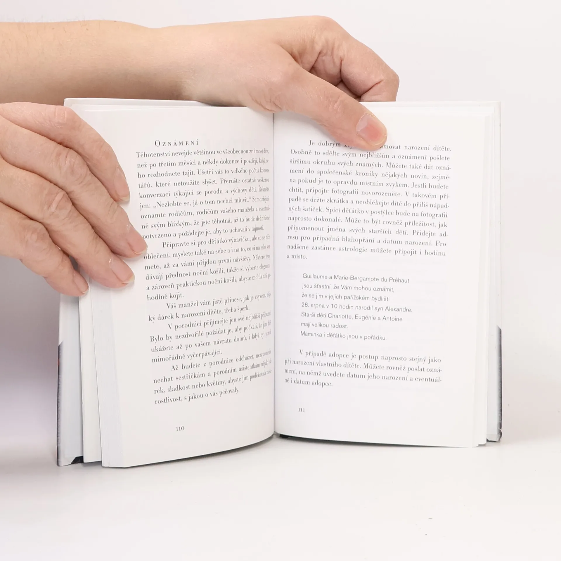 "Být vzornou manželkou, tou, která hrdě nese jméno svého manžela, navíc i svých dětí, je pýcha," píše autorka v časově nespecifikovaném textu, podle kontextu spadajícího cca do 30. let 20. století. Radí ohledně práce v domácnosti, vedení financí, výchově dětí a především vztahu s manželem. Vzhledem k tomu, že minimum dnešních žen působí pouze v domácnosti uprostřed služebnictva, jsou rady poněkud přežité, avšak existují pravidla, která fungují stále.