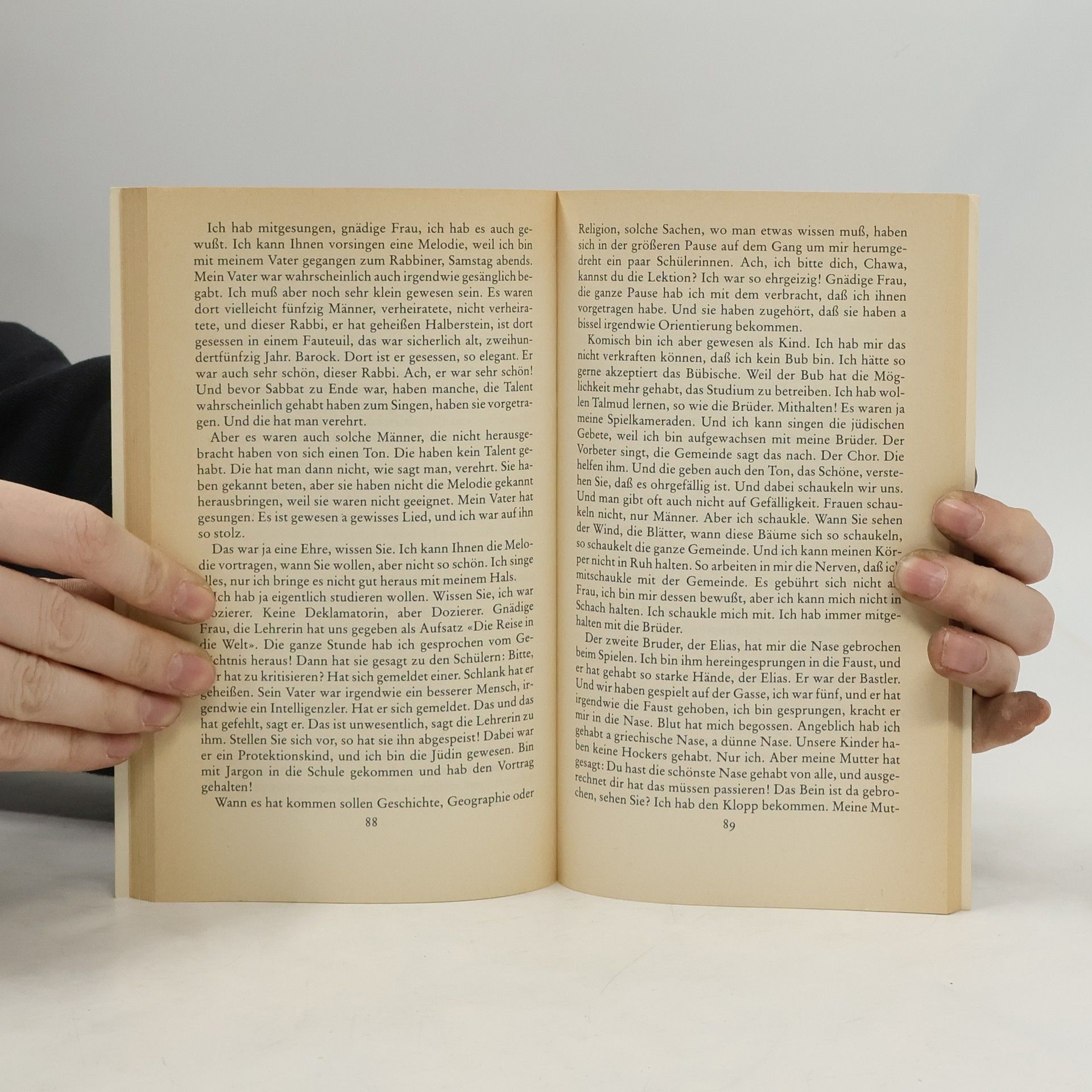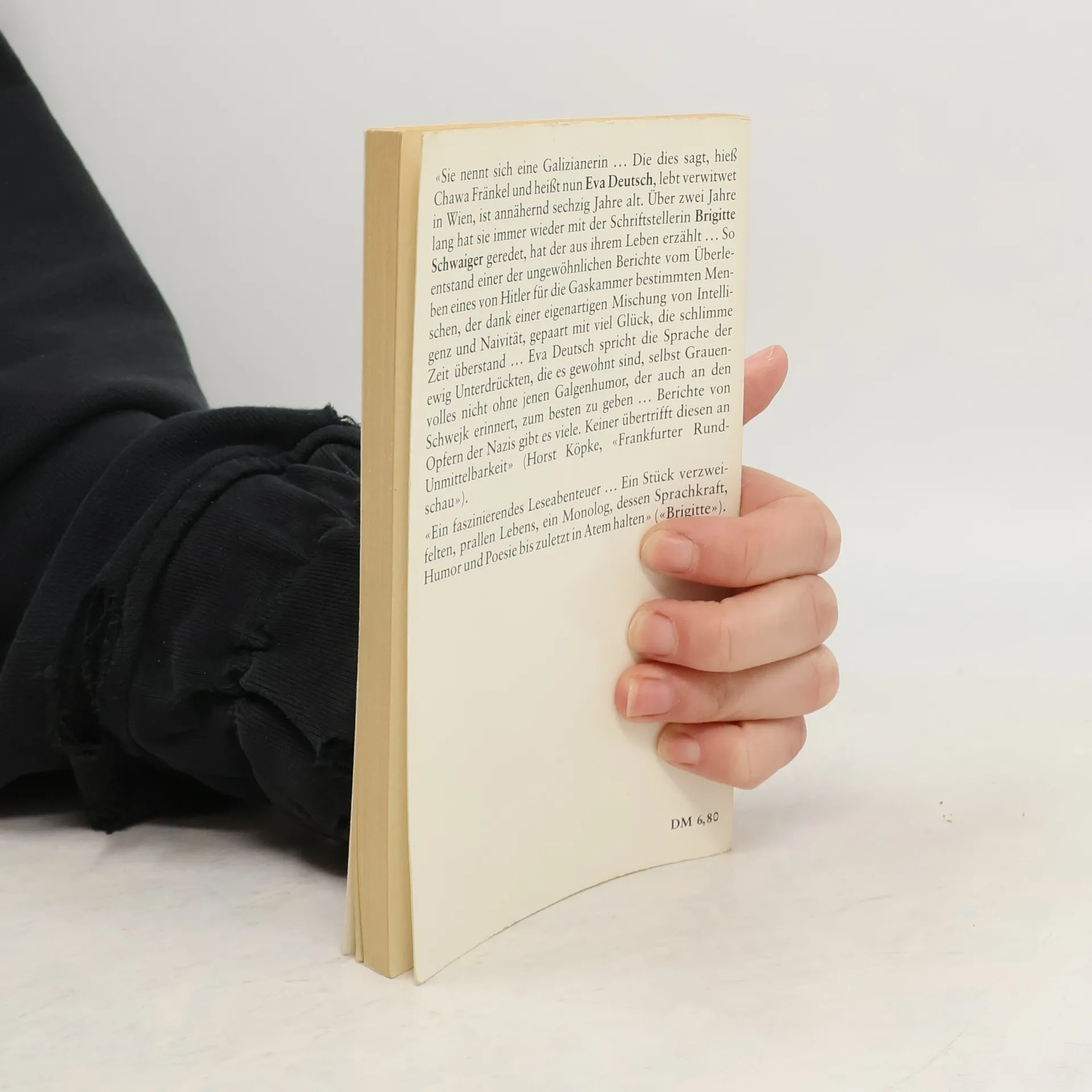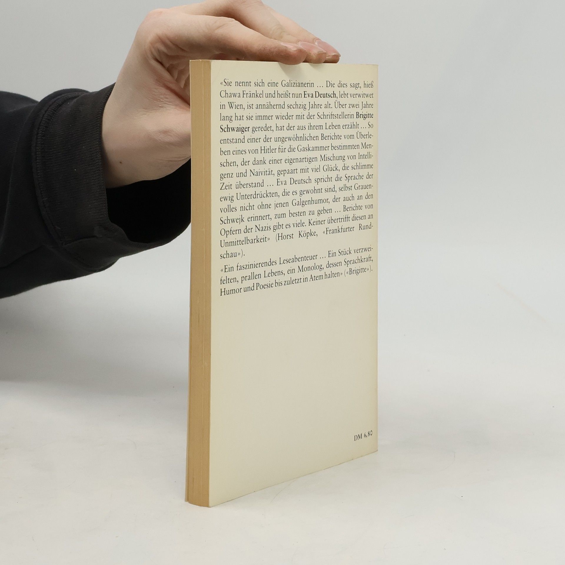 »Pardon, falls ich abweichen sollte vom Thema. Weil das ist bei mir die Gewohnheit. Mein Mann hat gesagt: Du weichst ab! Hoffentlich werde ich taugen. Weil ich doch nicht weiß, wohin Sie steuern. Gnädige Frau, es gibt Leute, die viel hinter die Ohren haben! Denen muß man sehr aufpassen, was man redet. Da weiß man nicht, wo man hinkommt mit der Geschichte. Ich hab mich hinreißen lassen einmal, und man hat mir gedroht, man wird mich klagen. Hab ich jemanden zusammengeschimpft zum Faschisten. Hab ich gesagt: Sie waren wahrscheinlich eine von denen, die den Hitler mit Hurra empfangen haben, sonst möchten Sie nicht so a Benehmen zur Schau tragen. Auf den herauf hat sie mir geantwortet, daß sie hat das Recht, mich zu verklagen. lch hab mich dann bei einem Advokaten erkundigt. Hat er wollen wissen, ob ich bin unbescholten. Wissen Sie, ich bin in Zorn gekommen und hab hereingehaut. Fertig war es! Meinetwegen soll man mich einsperren!« So beginnt die wahre, tragikomische und poetische Geschichte der Eva Deutsch, der Galizianerin. Die Geschichte der Galizianerin im Zweiten Weltkrieg überrascht durch die kraftvolle, an unvermuteten Bildern reiche Sprache und den natürlichen Witz, der ihre Heldin selbst in Situationen nicht verläßt, in denen es nichts zu lachen gibt.