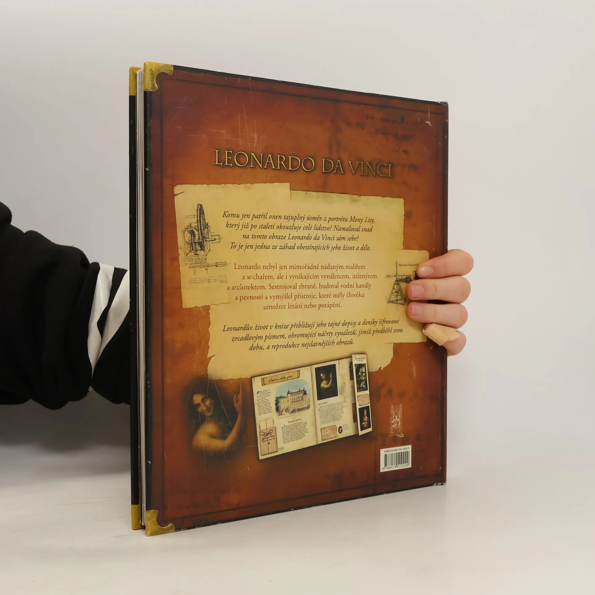 Leonardův život v knize přibližují jeho tajné dopisy a deníky šifrované zrcadlovým písmem, ohromující náčrty vynálezů, jimiž předběhl svou dobu, a reprodukce nejslavněších obrazů.