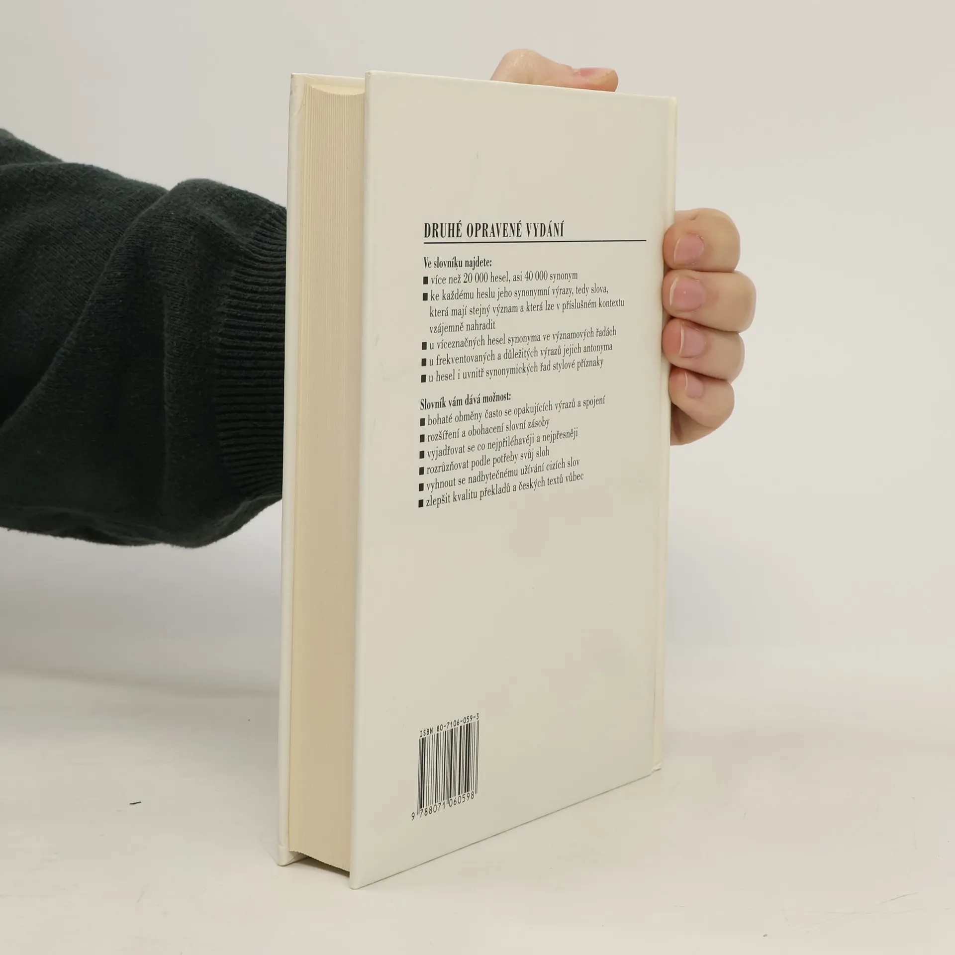 Čtvrté doplněné vydání oblíbené jazykové příručky, která přináší více než 22 000 hesel a asi 40 000 synonym. Ke každému heslu jsou uvedeny jeho synonymní výrazy, tedy slova, která mají stejný význam a která lze v příslušném kontextu vzájemně nahradit.