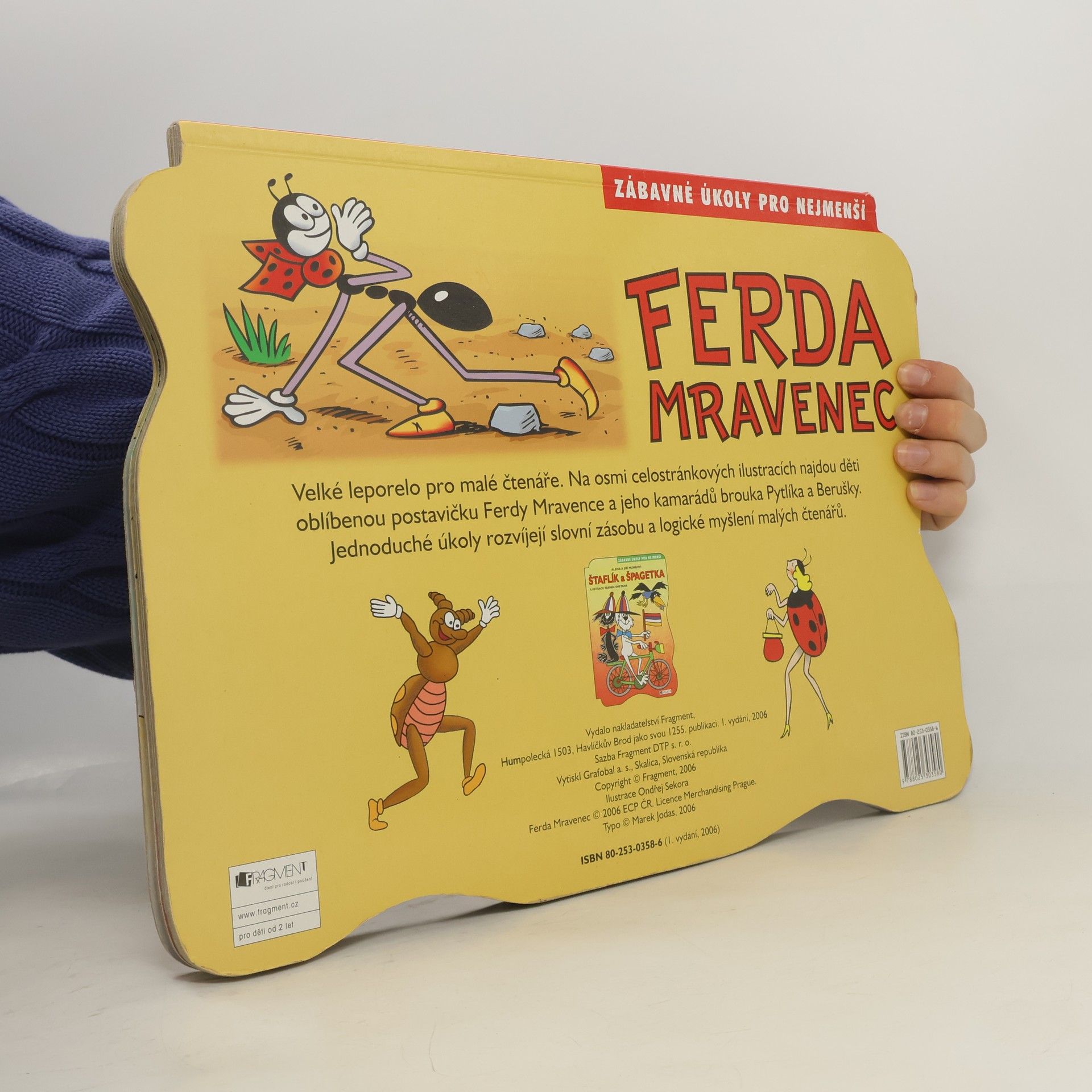 Velké leporelo pro malé čtenáře. Na osmi celostránkových ilustracích najdou děti oblíbenou postavičku Ferdy Mravence a jeho kamarádů brouka Pytlíka a Berušky. Jednoduché úkoly rozvíjejí slovní zásobu a logické myšlení malých čtenářů.