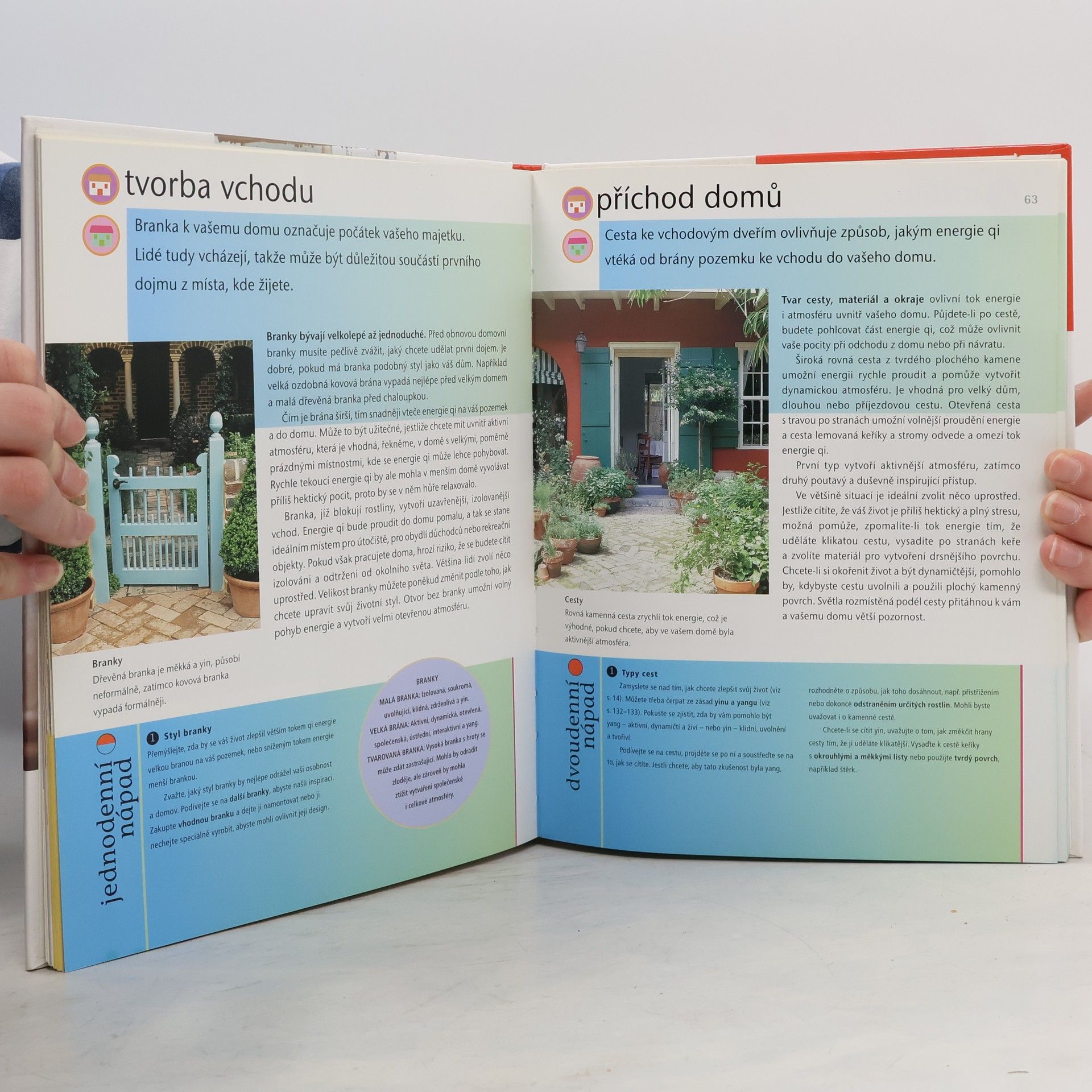 Všechno o tom, jak vytvořit domácí harmonii. Každý z nápadů lze velmi snadno uskutečnit. Stačí na to nejdéle dva dny. Návodné informace, jaké používat barvy, materiály a dekorativní triky pro zkrášlení a vylepšení domova. Podpůrná pozitivní energie vám pomůže žít, pracovat i radovat se naplno. Proměňte svůj příbytek uplatněním stylů feng shui. Modelové situace pro každou místnost. Snadné návrhy, jak vše v domě přebudovat, abyste energii qi umožnili lépe proudit.