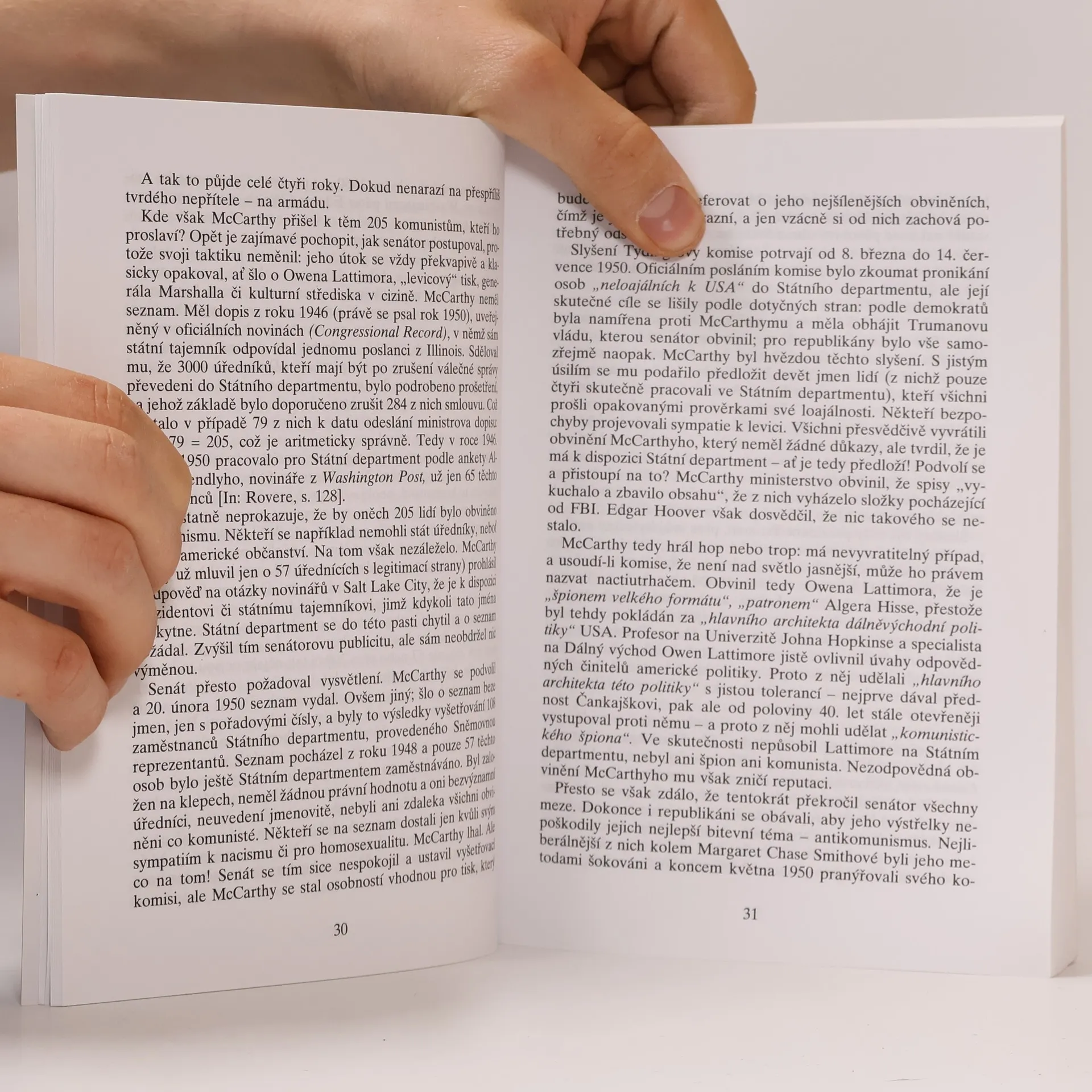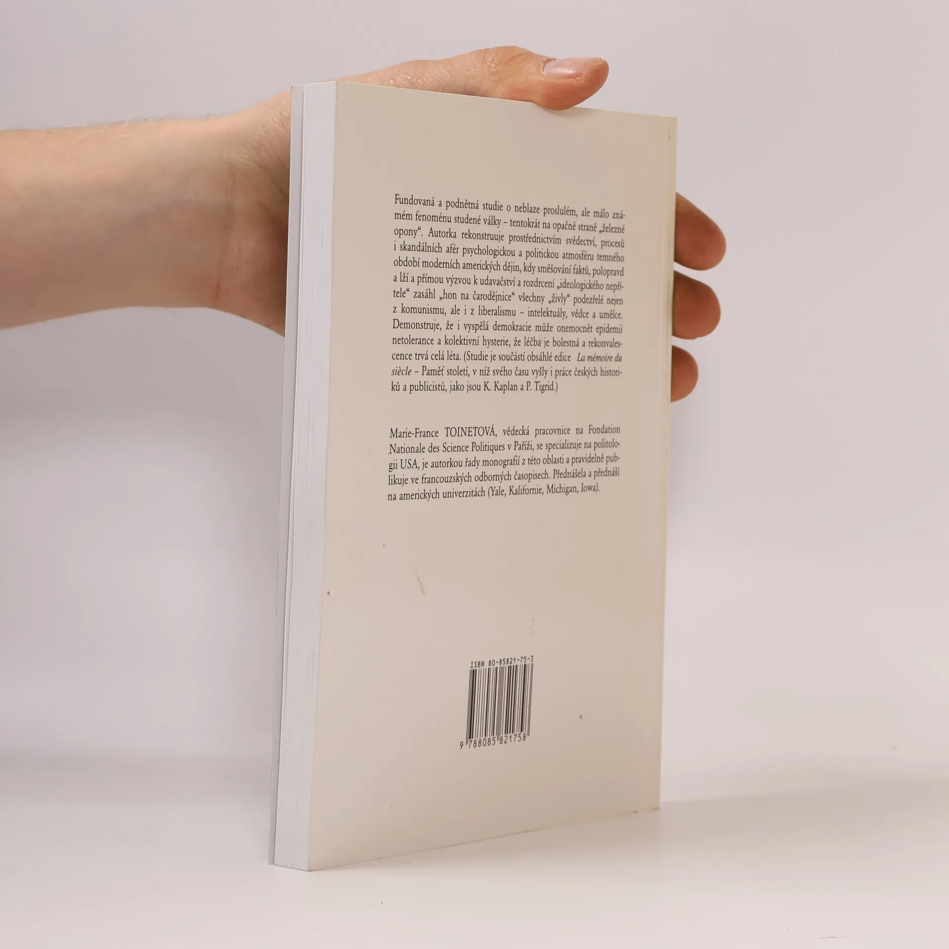 Fundovaná a podnětná studie o neblaze proslulém, ale málo známém fenoménu studené války - tentokrát na opačné straně "železné opony". Autorka rekonstruuje prostřednictvím svědectví, procesů i skandálních afér psychologickou a politickou atmosféru temného období moderních amerických dějin, kdy směšování faktů, polopravd a lží a přímou výzvou k udavačství a rozdrcení "ideologického nepřítele" zasáhl "hon na čarodějnice" všechny "živly" podezřelé nejen z komunismu, ale i liberalismu - intelektuály, vědce a umělce. Demonstruje, že i vyspělá demokracie může onemocnět epidemií netolerance a kolektivní histerie, že léčba je bolestná a rekonvalescence trvá celá léta.