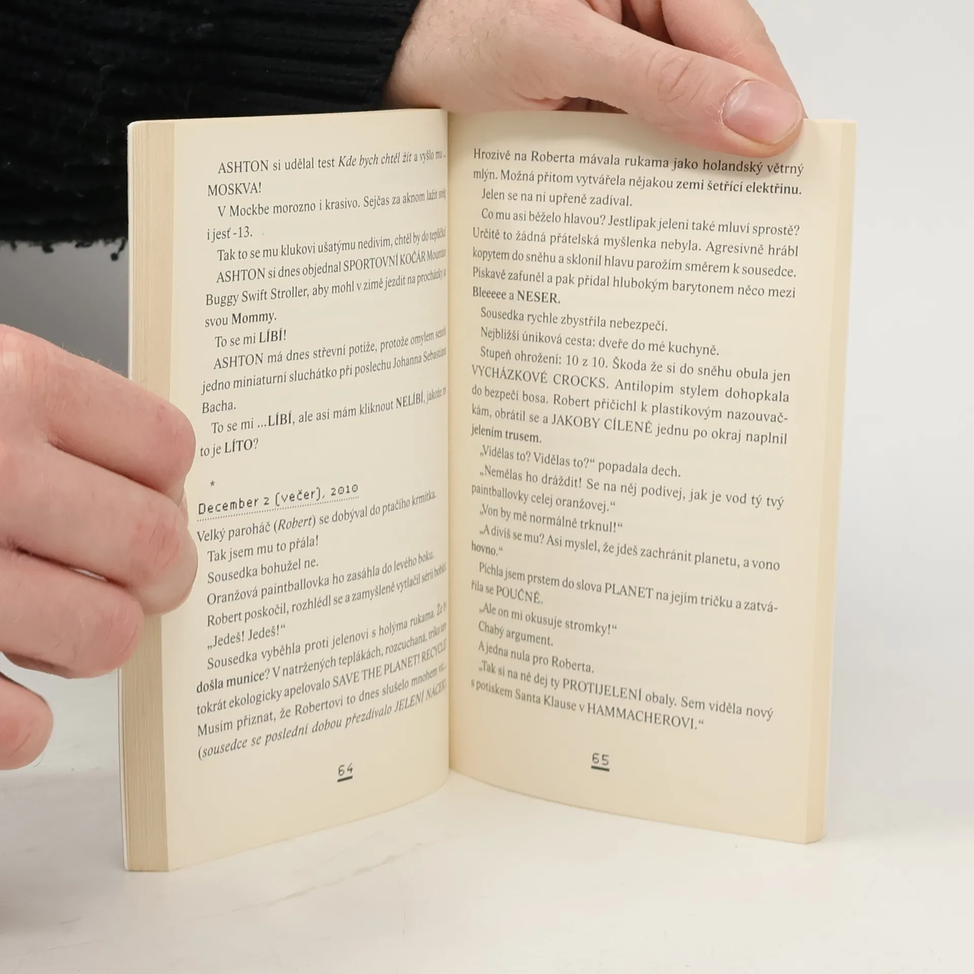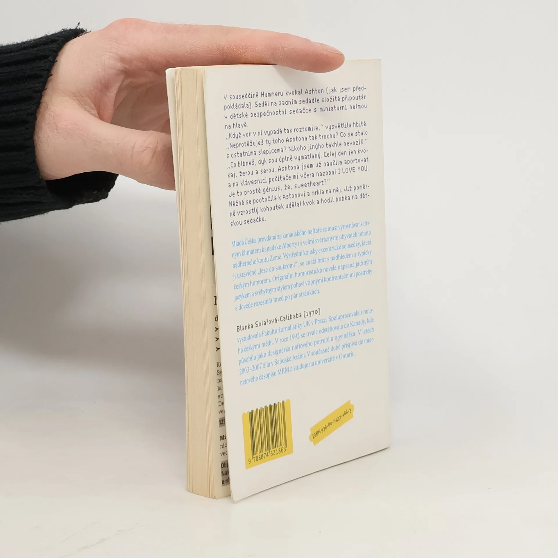 Mladá Češka provdaná za kanadského naftaře se musí vyrovnávat s drsným klimatem kanadské Alberty i s velmi svéráznými obyvateli tohoto nádherného koutu Země. Výstřední kousky excentrické sousedky, která jí ustavičně "leze do soukromí", se snaží brát s nadhledem a typicky českým humorem. Originální humoristická novela napsaná jadrným jazykem a svébytným stylem pobaví vtipnými konfrontačními postřehy a dovede rozesmát hned po pár stránkách.