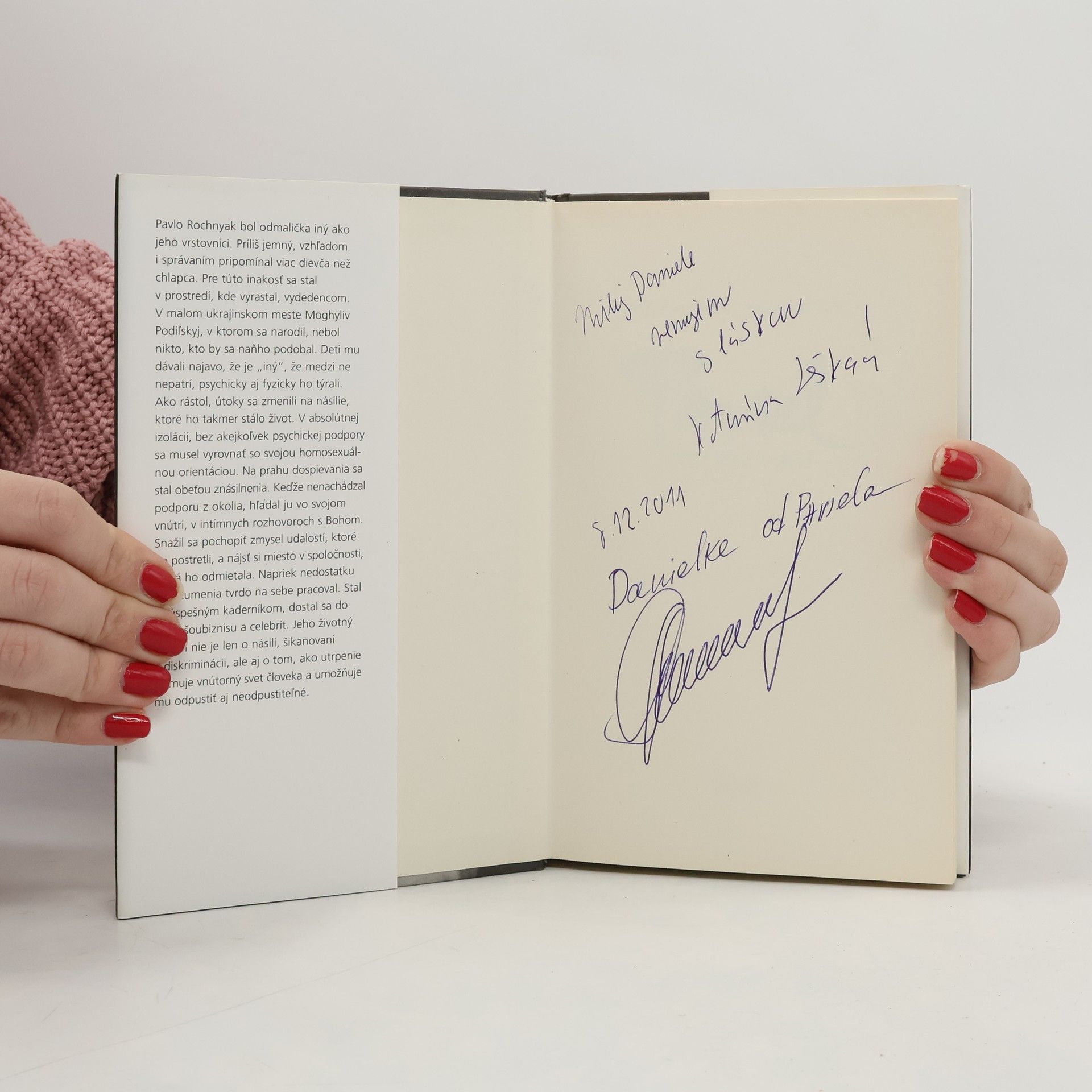 Paviel Rochnyak bol odmalička iný ako jeho vrstovníci. Príliš jemný, vzhľadom i správaním pripomínal viac dievča než chlapca. Pre túto inakosť sa stal v prostredí, kde vyrastal, vydedencom. V malom ukrajinskom meste Moghyliv Podiľskyj, v ktorom sa narodil, nebol nikto, kto by sa naňho podobal. Deti mu dávali najavo, že je „iný“, že medzi ne nepatrí, psychicky aj fyzicky ho týrali. Ako rástol, útoky sa zmenili na násilie, ktoré ho takmer stálo život. V absolútnej izolácii, bez akejkoľvek psychickej podpory sa musel vyrovnať so svojou homosexuálnou orientáciou. Na prahu dospievania sa stal obeťou znásilnenia. Keďže nenachádzal podporu z okolia, hľadal ju vo svojom vnútri, v intímnych rozhovoroch s Bohom. Snažil sa pochopiť zmysel udalostí, ktoré ho postretli, a nájsť si miesto v spoločnosti, ktorá ho odmietala. Napriek nedostatku porozumenia tvrdo na sebe pracoval. Stal sa úspešným kaderníkom, dostal sa do sveta šoubiznisu a celebrít. Jeho životný príbeh nie je len o násilí, šikanovaní a diskriminácii, ale aj o tom, ako utrpenie formuje vnútorný svet človeka a umožňuje mu odpustiť aj neodpustiteľné.