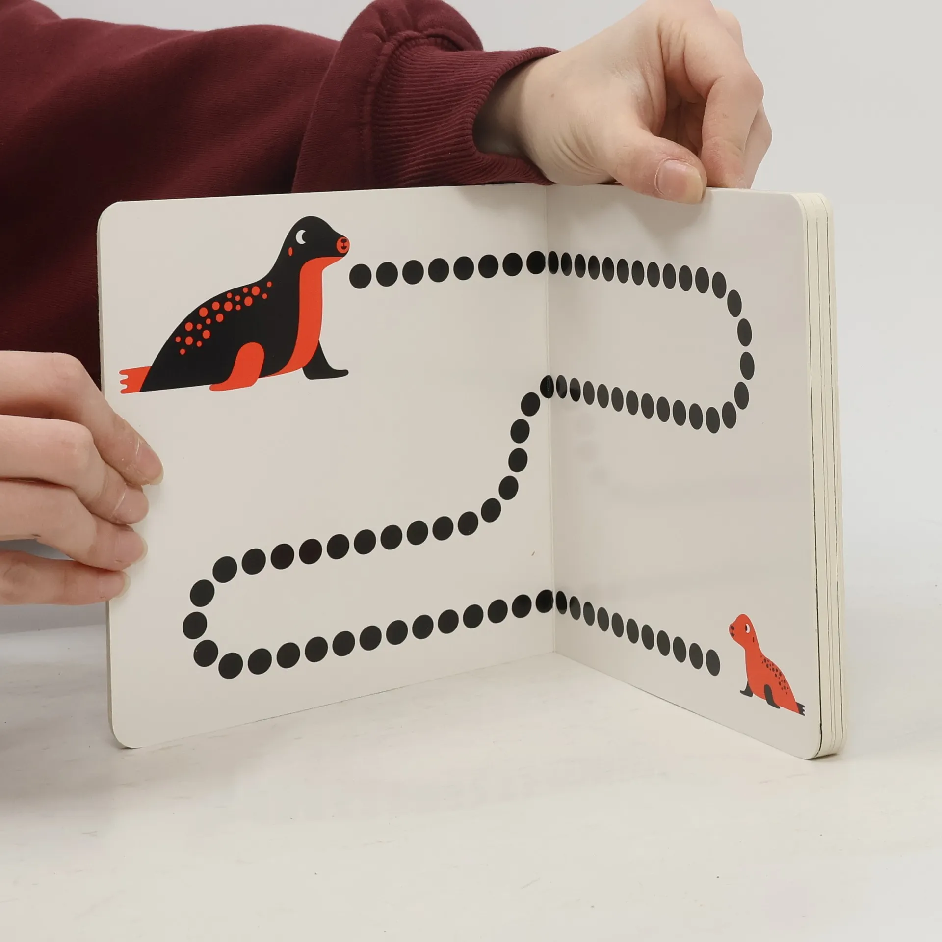 Pojďte strávit čas se svým dítětem a listujte společně stránkami této knížky, vytvořené speciálně pro děti podle metody Marie Montessori! Malí čtenáři mohou prstem sledovat cestičky, dívat se na černobílé obrázky, všímat si malých detailů v červené barvě a začít prozkoumávat svět.