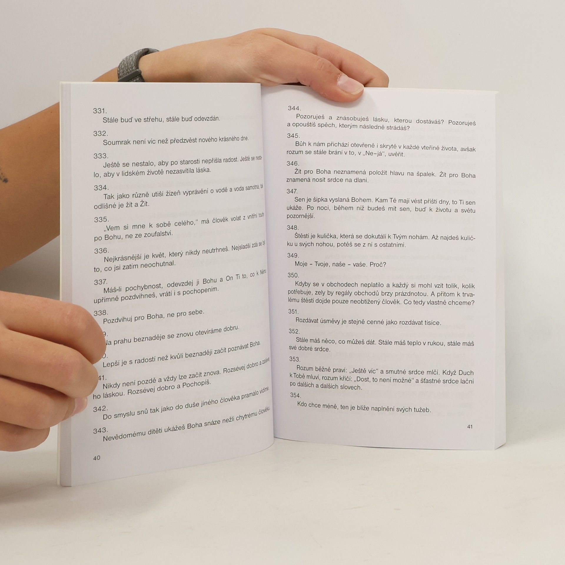 Sled impulsů k zamyšlení nad naším přístupem ke světu a k sobě samému. Dává možnost přehodnotit svůj žebříček hodnot a své životní priority, které se zde upírají k lásce k Bohu a ke svému bližnímu.