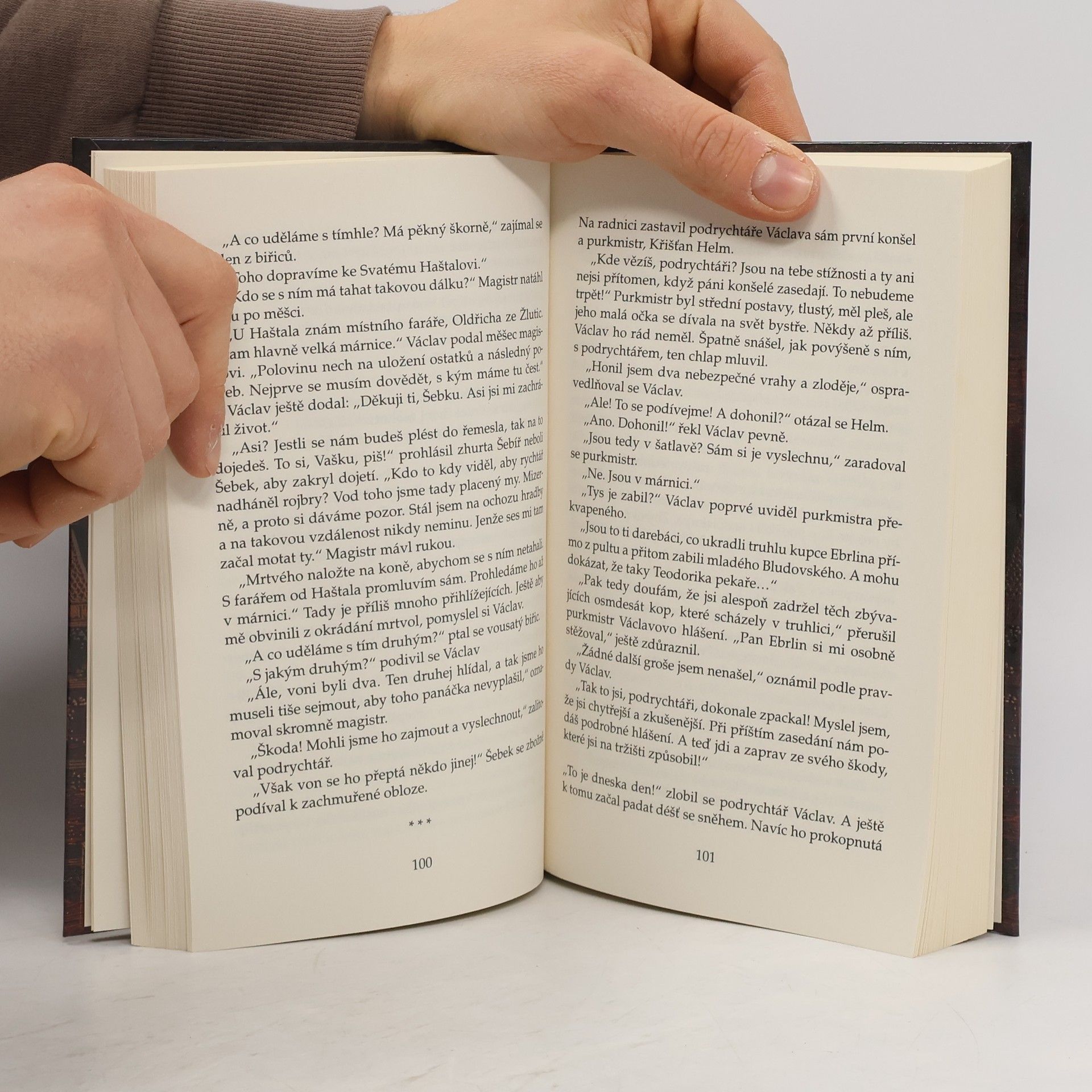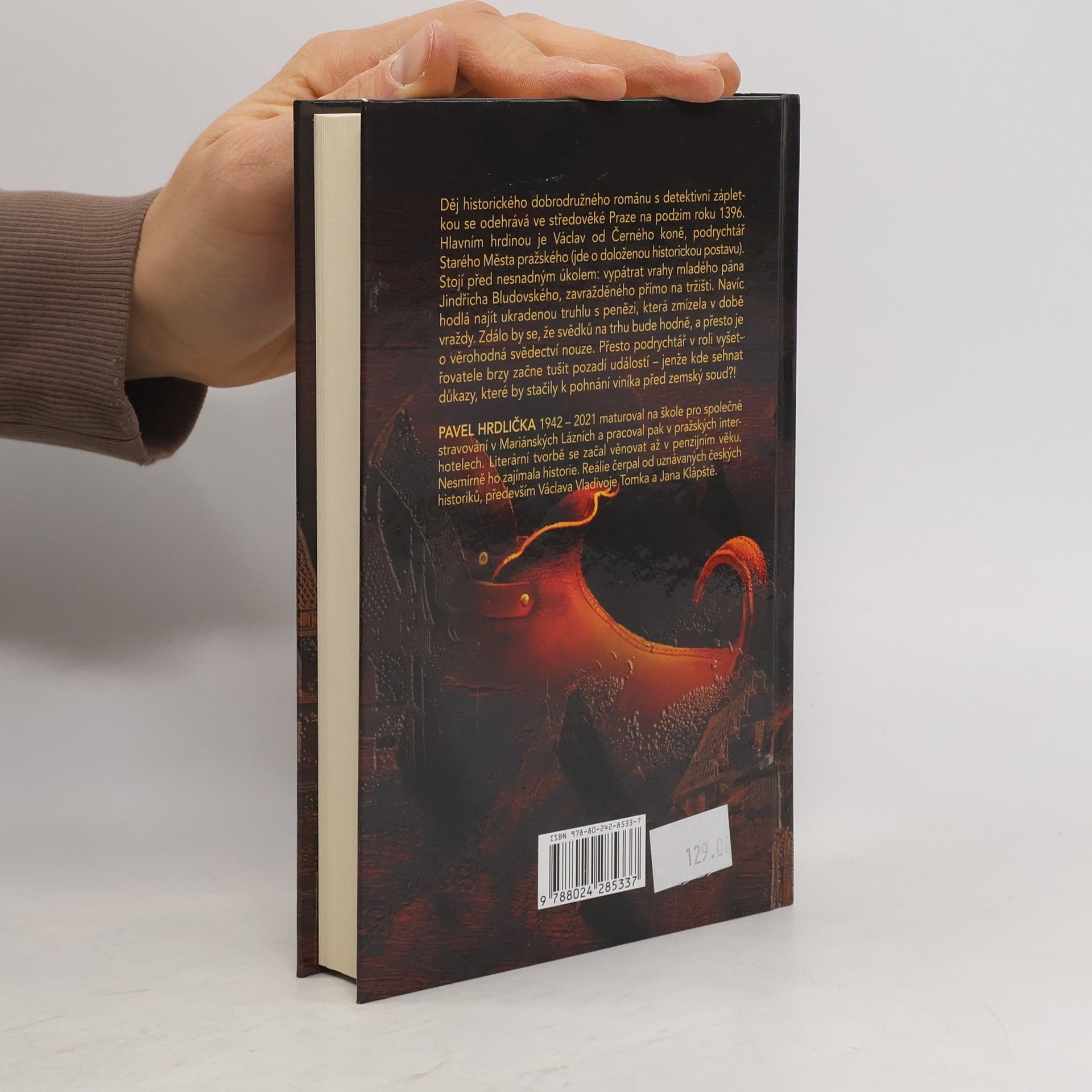 Historický dobrodružný román s detektivní zápletkou ze středověké Prahy roku 1396. Hlavním hrdinou je Václav od Černého koně (doložená historická postava), podrychtář Starého města pražského, který stojí před nesnadným úkolem vypátrat vrahy mladého pána Jindřicha Bludovského, zavražděného přímo na tržišti. Navíc hodlá najít ukradenou truhlu s penězi velkokupce Ebrlína, která zmizela v době vraždy. Zdálo by se, že svědků na trhu bude hodně, a přesto je o věrohodná svědectví nouze. Ale i tak podrychtář v roli vyšetřovatele brzy začne tušit pozadí událostí. Kde však sehnat důkazy, které by stačily k pohnání viníka před zemský soud? O nebývalé starosti má tedy Václav postaráno, zvlášť když čelí stálým nesvárům staroměstských občanů, v opuštěném domě u hřbitova straší a každou chvilku přispěje svou troškou do mlýna i Václavova manželka...