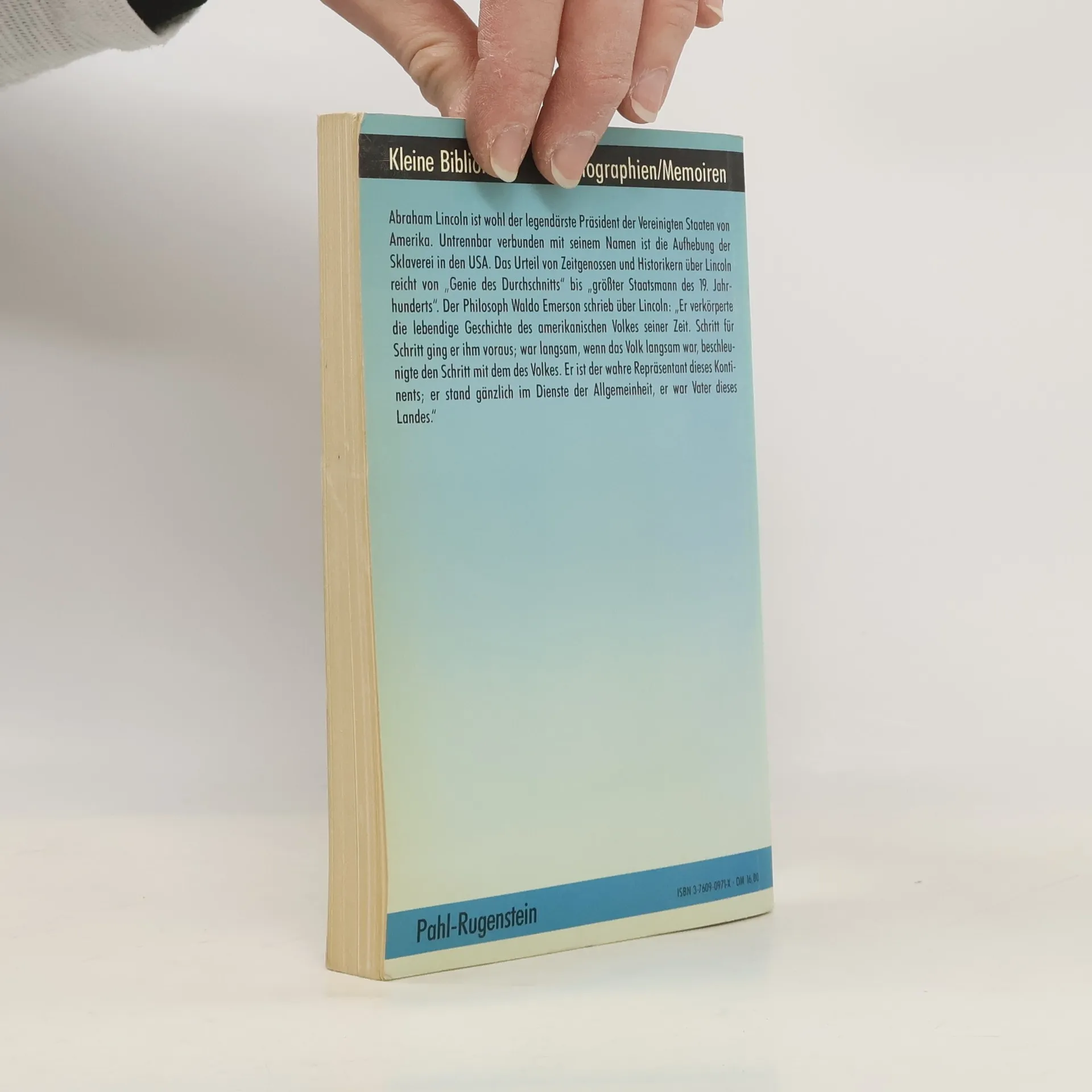 Abraham Lincoln ist wohl der legendärste Präsident der Vereinigten Staaten von Amerika. Untrennbar verbunden mit seinem Namen ist die Aufhebung der Sklaverei in den USA. Das Urteil von Zeitgenossen und Historikern über Lincoln reicht von „Genie des Durchschnitts" bis „größter Staatsmann des 19. Jahrhunderts". Der Philosoph Waldo Emerson schrieb über „Er verkörperte die lebendige Geschichte des amerikanischen Volkes seiner Zeit. Schritt für Schritt ging er ihm voraus; war langsam, wenn das Volk langsam war, beschleunigte den Schritt mit dem des Volkes. Er ist der wahre Repräsentant dieses Kontinents; er stand gänzlich im Dienste der Allgemeinheit, er war Vater dieses Landes."
