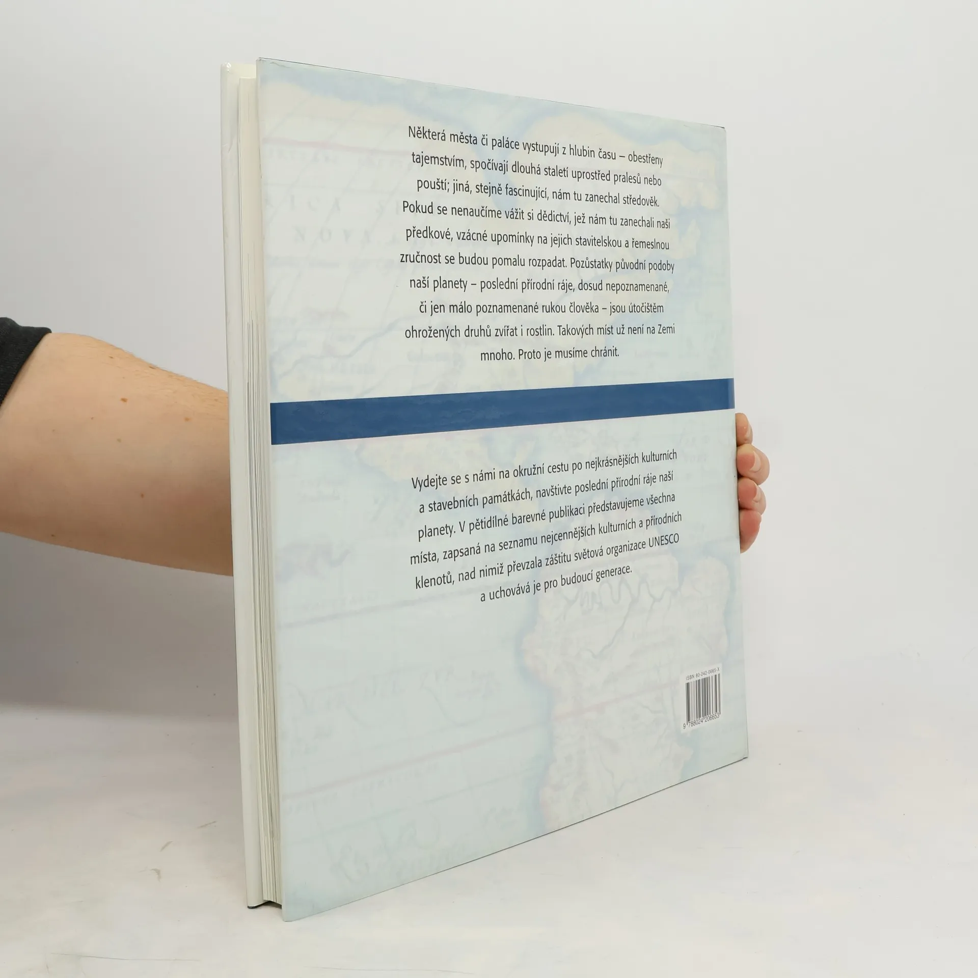 Na naší planetě můžeme obdivovat stovky nádherných měst a paláců, které postavili naši předkové, a zároveň se kochat krásou přírody, jež zatím odolává moderní civilizaci. Organizace UNESCO si klade za cíl zdokumentovat všechny památky a krajinné útvary s vysokou historickou a kulturní hodnotou, které si zaslouží mimořádnou pozornost. V současnosti sleduje více než 600 objektů, pomáhá uchovávat kulturní dědictví a chrání jedinečné přírodní scenerie. Publikace, která má šest dílů, přináší všechny kulturní i přírodní památky pod záštitou UNESCO, ukazuje jejich krásu a představuje je jako součást kultury, náboženství, mýtů a tradic společností, které je vytvořily nebo v jejich blízkosti žijí. Nicméně, jedinečné přírodní scenerie a architektonická díla čelí mnoha hrozbám, jako je znečištění, masová turistika a necitlivé osidlování. Dnes se učíme chápat, že naše kořeny spočívají v tradicích našich předků a že nedotčená příroda má pro náš život neocenitelný význam.