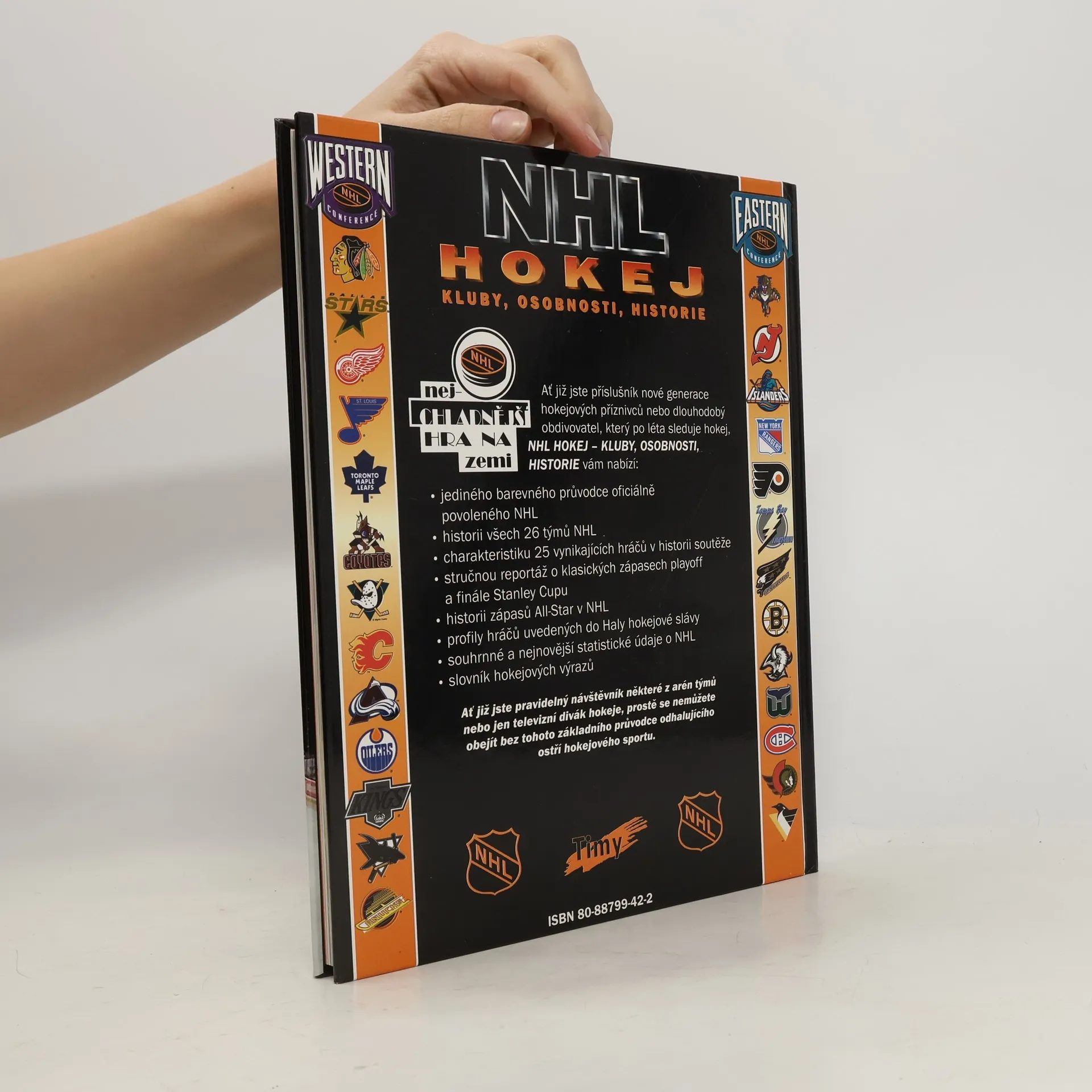 Kniha s podtitulem kluby, osobnosti, historie přináší komplexní a zároveň kompaktní pohled na nejslavnější hokejovou ligu světa s přihlédnutím k datu vydání v roce 1996. Na relativně malém prostoru 128 stran se o NHL dozvíte vše podstatné včetně historie, statistik a hokejové hantýrky.