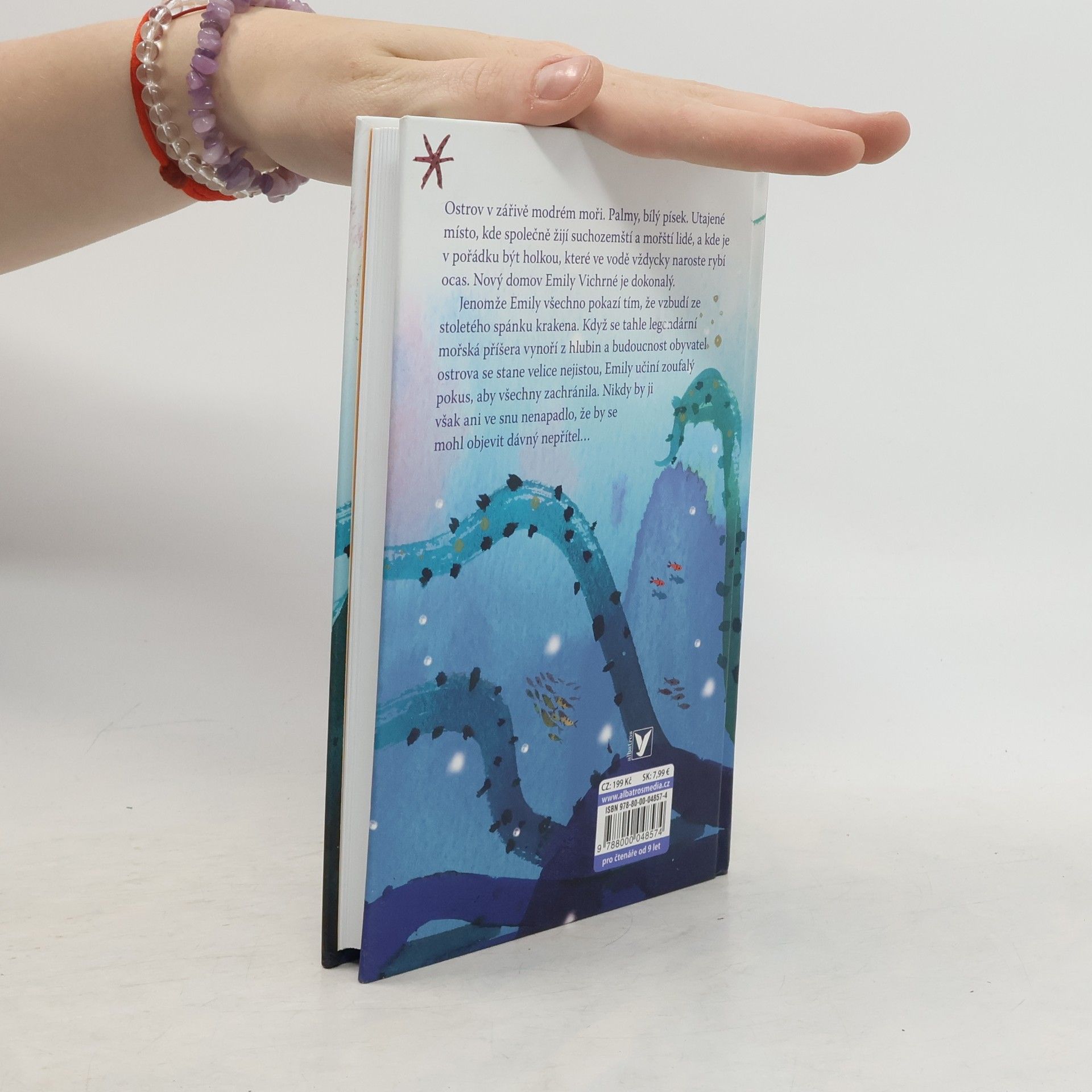 Nový domov Emily Vichrné se zdá být dokonalý. Jenže pod hladinou číhá nebezpečí... Ostrov v zářivě modrém moři. Palmy, bílý písek. Utajené místo, kde společně žijí suchozemští a mořští lidé a kde je v pořádku být holkou, které ve vodě vždycky naroste rybí ocas. Nový domov Emily Vichrné je dokonalý. Jenomže Emily všechno pokazí tím, že vzbudí ze stoletého spánku Krakena. Když se tahle legendární mořská příšera vynoří z hlubin a budoucnost obyvatel ostrova se stane velice nejistou, Emily učiní zoufalý pokus, aby všechny zachránila. Podaří se jí to?