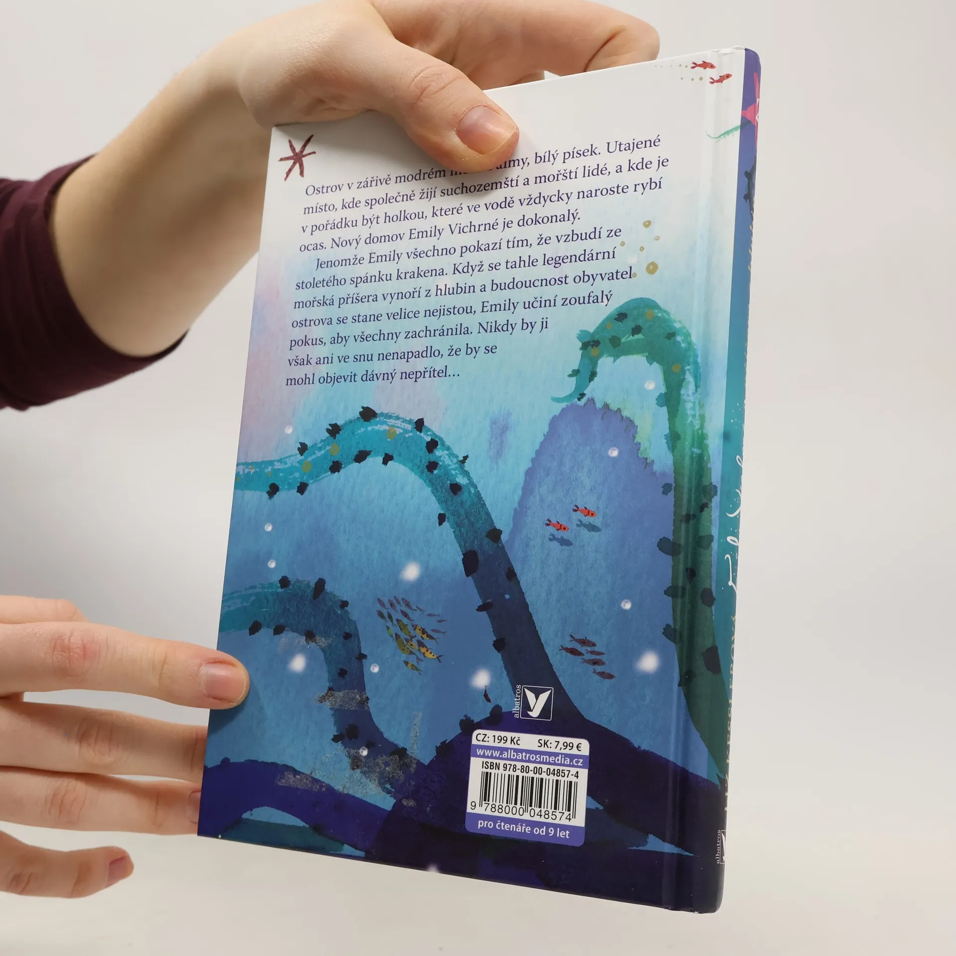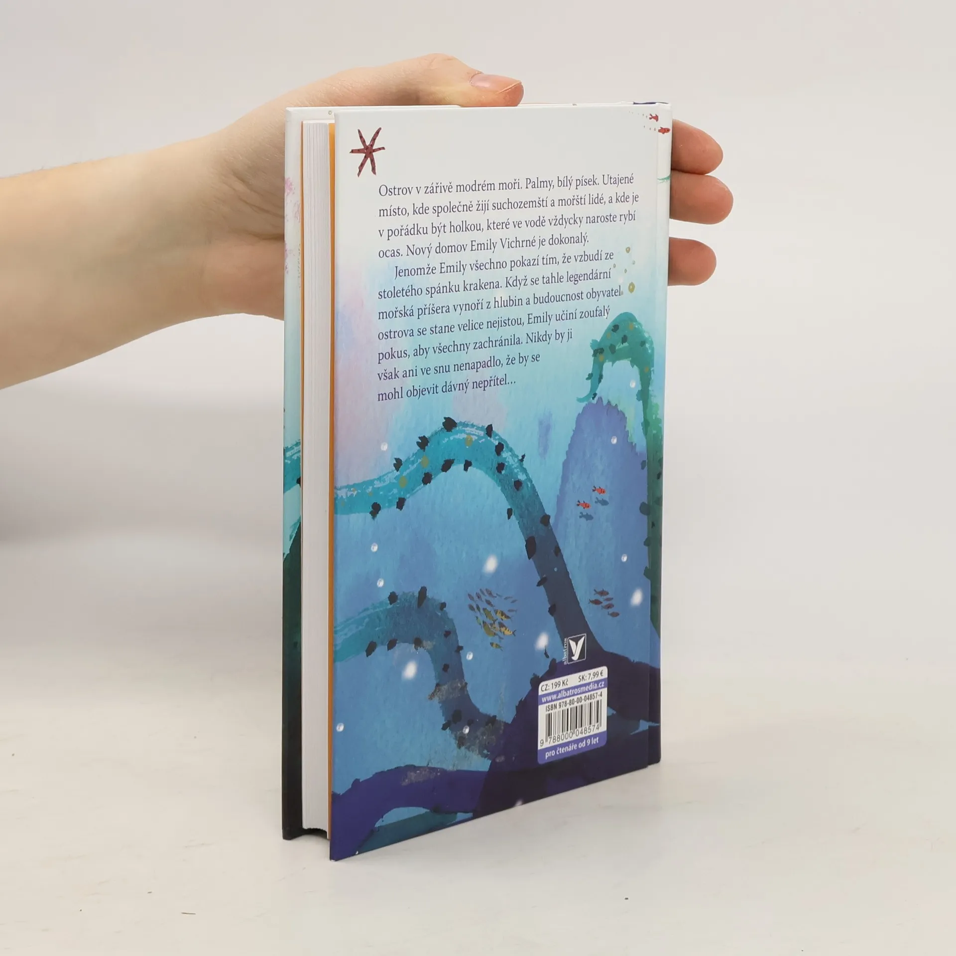 Nový domov Emily Vichrné se zdá být dokonalý. Jenže pod hladinou číhá nebezpečí... Ostrov v zářivě modrém moři. Palmy, bílý písek. Utajené místo, kde společně žijí suchozemští a mořští lidé a kde je v pořádku být holkou, které ve vodě vždycky naroste rybí ocas. Nový domov Emily Vichrné je dokonalý. Jenomže Emily všechno pokazí tím, že vzbudí ze stoletého spánku Krakena. Když se tahle legendární mořská příšera vynoří z hlubin a budoucnost obyvatel ostrova se stane velice nejistou, Emily učiní zoufalý pokus, aby všechny zachránila. Podaří se jí to?