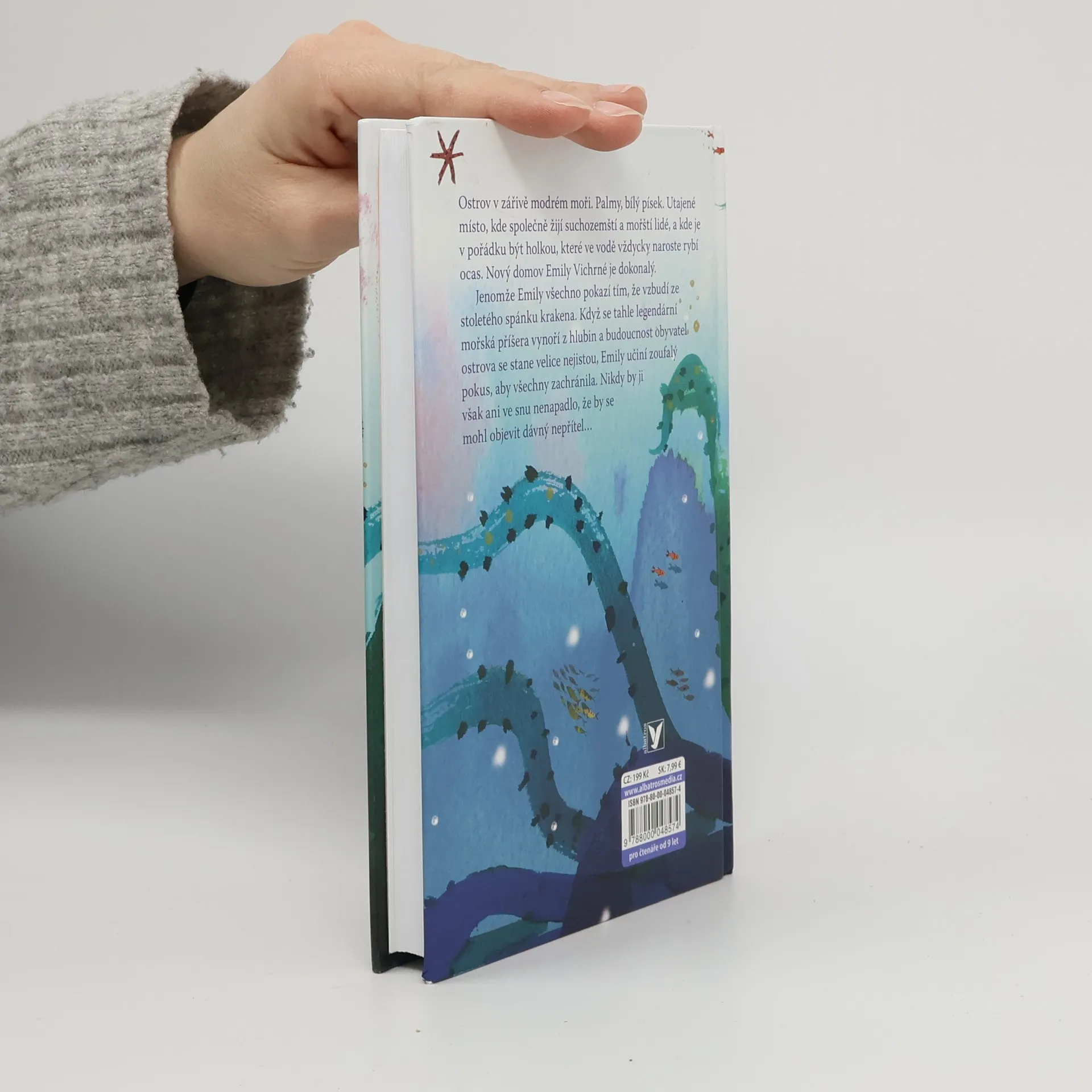 Nový domov Emily Vichrné se zdá být dokonalý. Jenže pod hladinou číhá nebezpečí... Ostrov v zářivě modrém moři. Palmy, bílý písek. Utajené místo, kde společně žijí suchozemští a mořští lidé a kde je v pořádku být holkou, které ve vodě vždycky naroste rybí ocas. Nový domov Emily Vichrné je dokonalý. Jenomže Emily všechno pokazí tím, že vzbudí ze stoletého spánku Krakena. Když se tahle legendární mořská příšera vynoří z hlubin a budoucnost obyvatel ostrova se stane velice nejistou, Emily učiní zoufalý pokus, aby všechny zachránila. Podaří se jí to?