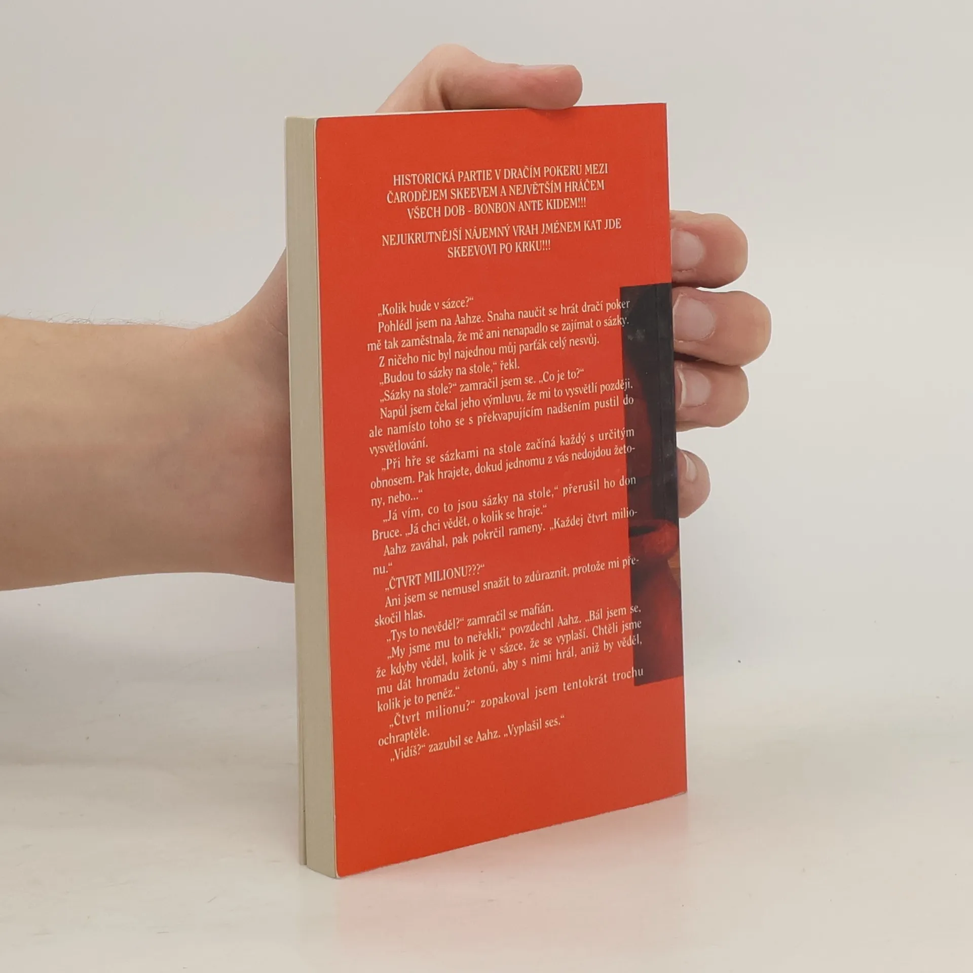 Šestá kniha série Mýtus. Historická partie v Dračím pokeru mezi čarodějem Skeevem a největším hráčem všech dob – Bonbon Ante Kidem!!! Nejukrutnější nájemný vrah jménem Kat jde Skeevovi po krku!!!