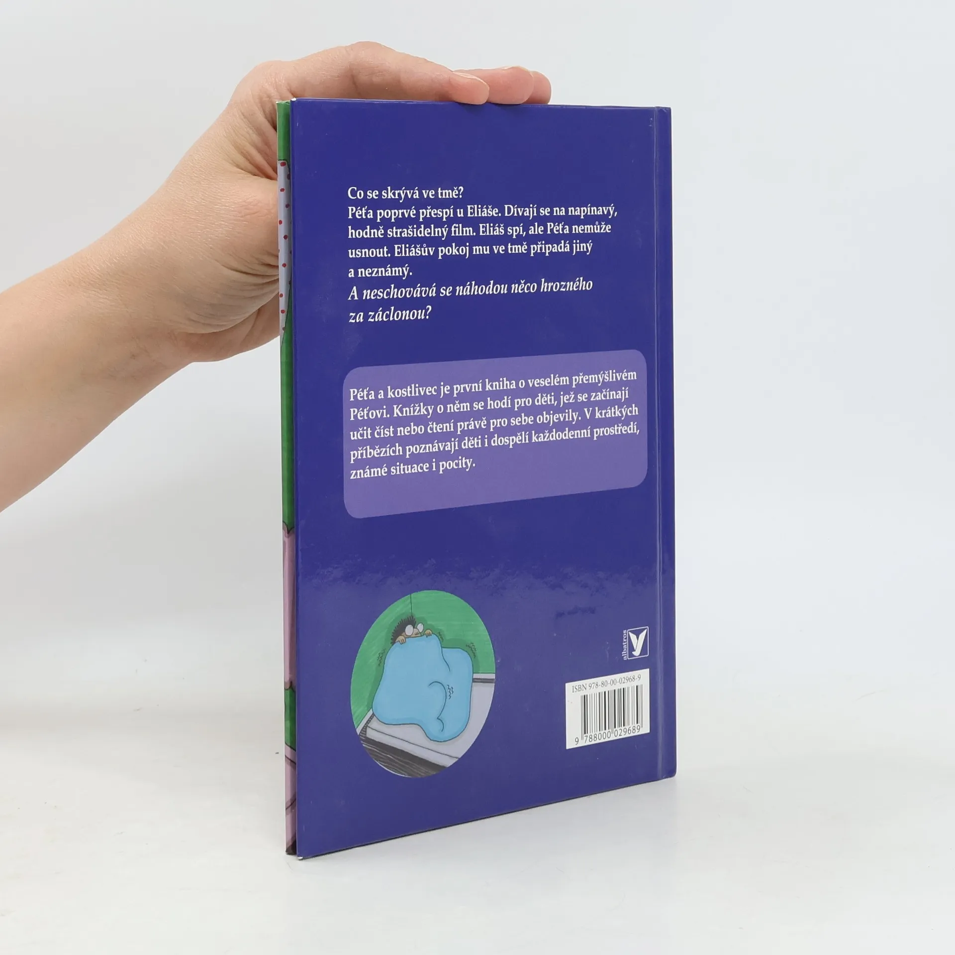 Péťa poprvé přespí u Eliáše. Dívají se na napínavý, hodně strašidelný film. Eliáš spí, ale Péťa nemůže usnout. Eliášův pokoj mu ve tmě připadá jiný a neznámý. A neschovává se náhodou něco hrozného za záclonou? Péťa a kostlivec je první kniha o veselém přemýšlivém Péťovi, která potěší nejen začínající čtenáře! Péťa a kostlivec je první kniha o veselém přemýšlivém Péťovi. Knížky o něm se hodí pro děti, jež se začínají učit číst nebo čtení právě pro sebe objevily. V krátkých příbězích poznávají děti i dospělí každodenní prostředí, známé situace a pocity.