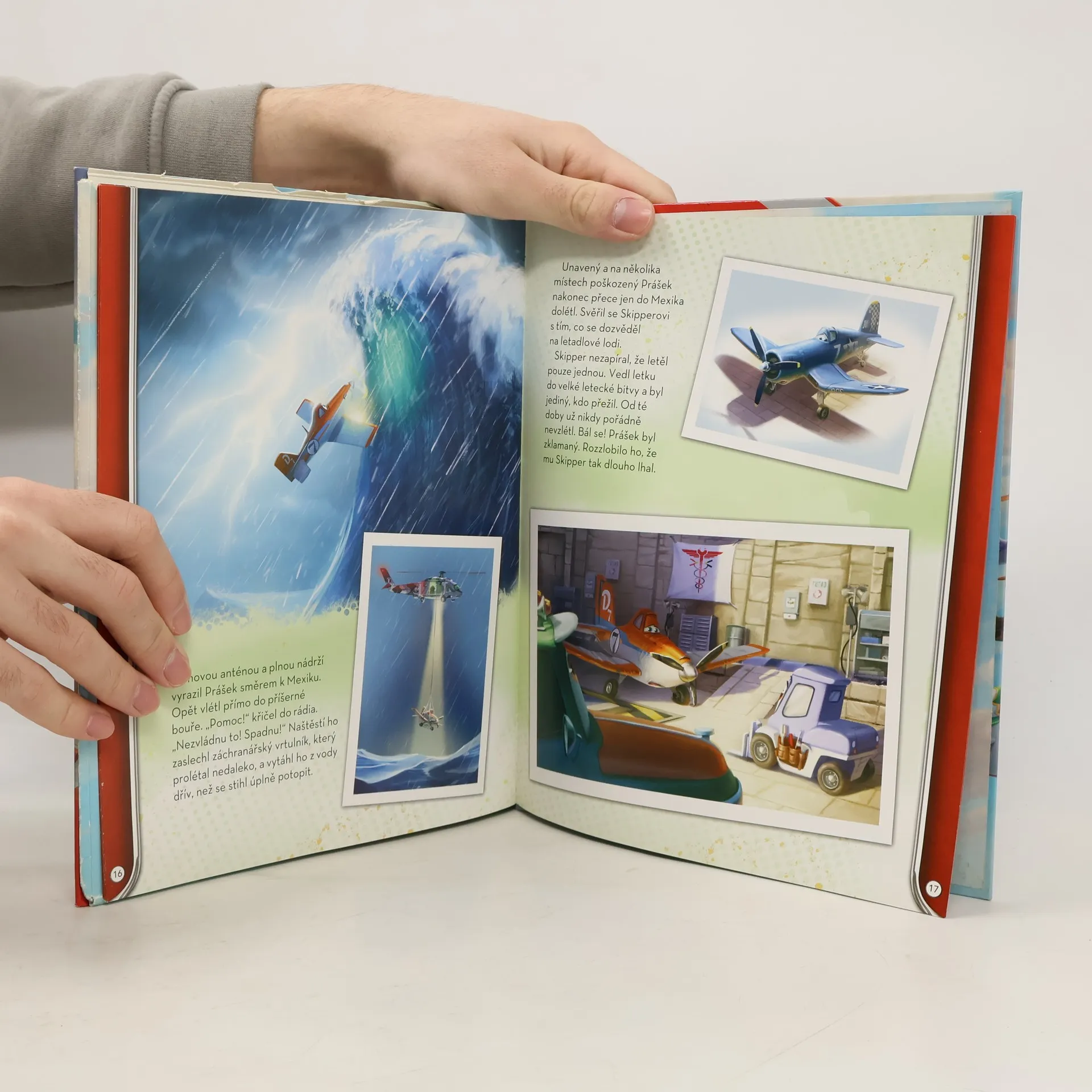 Kniha s příběhem z filmu a šablonami letadel, která opravdu létají. Leporelo.
