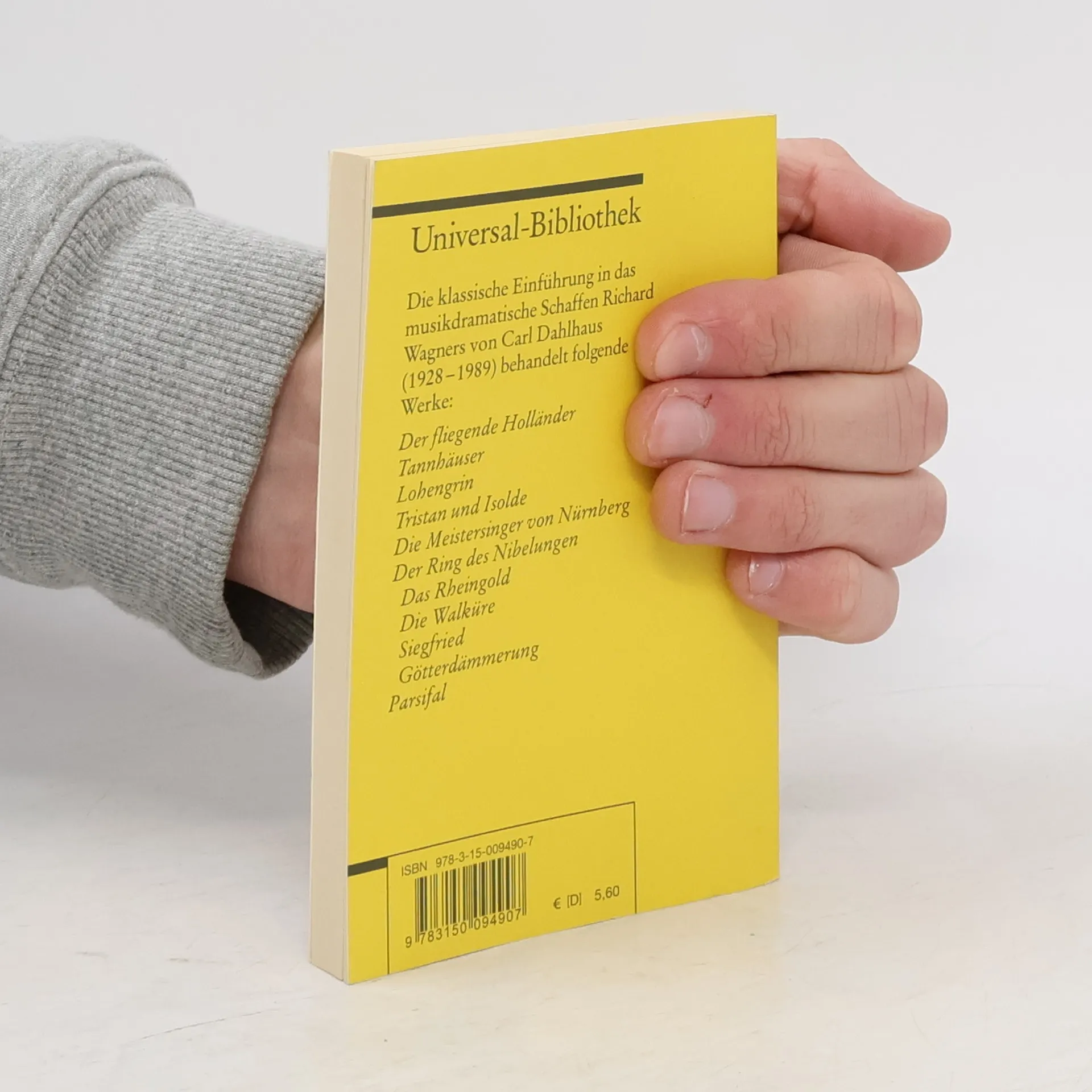 Die klassische Einführung in das musikdramatische Schaffen Richard Wagners von Carl Dahlhaus (1928-1989) behandelt folgende Werke: Der fliegende Holländer, Tannhäuser, Lohengrin, Tristan und Isolde, Die Meistersinger von Nürnberg, Der Ring des Nibelungen (Das Rheingold, Die Walküre Siegfried, Götterdämmerung) und Parsifal.