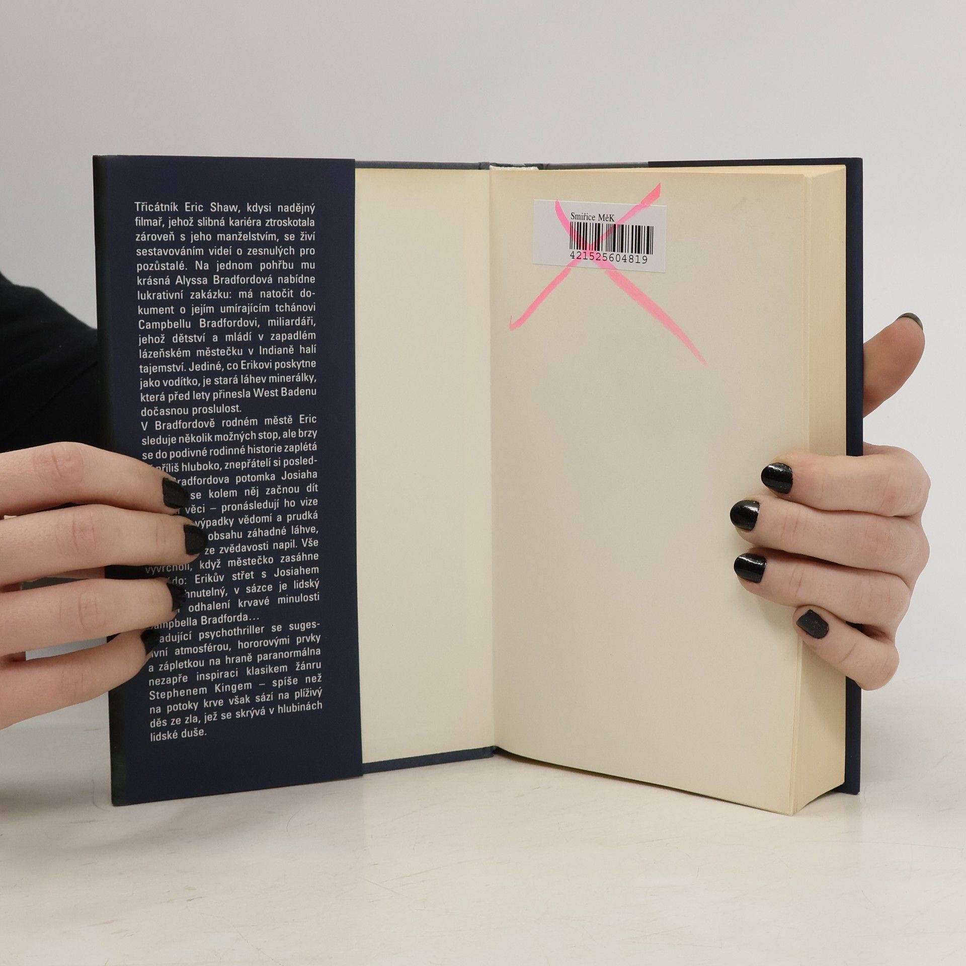 Nadějný, ale neúspěšný filmař Eric Shaw má natočit dokument o miliardáři Campbellu Bradfordovi, jehož dětství a mládí v zapadlém lázeňském městečku v Indianě halí tajemství. Jediným vodítkem je stará láhev místní minerálky. Po příchodu do West Badenu začnou Erika pronásledovat vize minulosti, výpadky vědomí a prudká závislost na obsahu záhadné láhve, ze které se ze zvědavosti napil. Zároveň si znepřátelí posledního Bradfordova potomka Josiaha… a městečko záhy zasáhne ničivé tornádo. Gradující psychothriller se sugestivní atmosférou, hororovými prvky a zápletkou na hraně paranormálna nezapře inspiraci klasikem žánru Stephenem Kingem – spíše než na potoky krve však sází na plíživý děs ze zla, jenž se skrývá v hlubinách lidské duše. Kniha je stejně brilantně napsaná jako dva předchozí tituly tohoto nadějného amerického autora (který má mimochodem české kořeny) - Dnes večer jsem se rozloučila a Hymna zármutku.