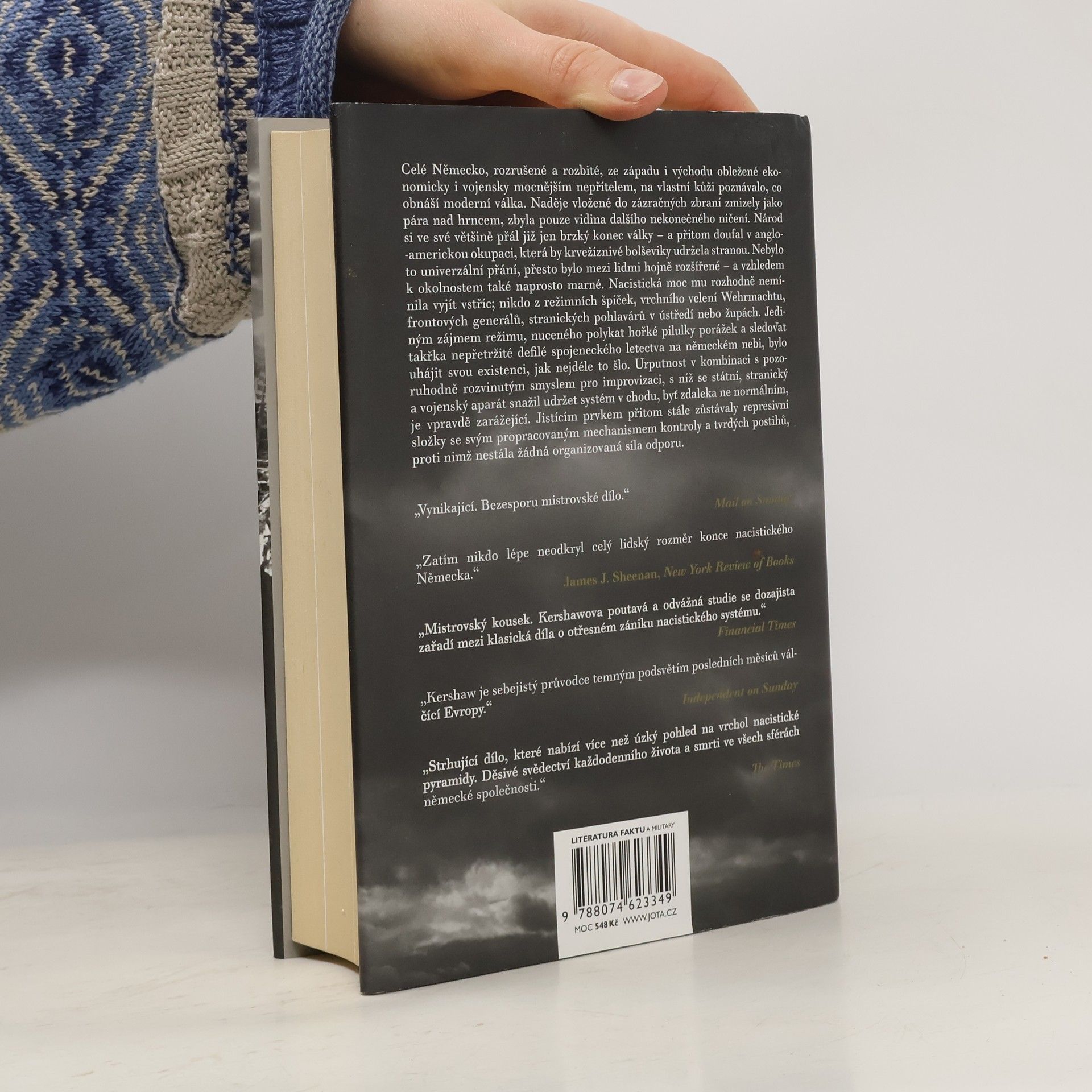 Mistrná a ojedinělá studie mechanismů fungování nacistické společnosti v závěrečných měsících druhé světové války se zabývá zásadními otázkami spojenými s koncem nacistického Německa. Jaké motivy vedly Německo k pokračování v boji, i když bylo jasné, že válku prohrálo? Jak dokázal rozkládající se hitlerovský stát přežít až do příchodu Rudé armády k Říšskému kancléřství? Proč se německý národ nevzpíral režimu, jenž jej vystavil brutálnímu teroru a vedl zemi do záhuby, na rozdíl od situace v roce 1918? Jak armáda stále poslušně plnila Hitlerovy nesmyslné rozkazy? Jakou roli hrály strach a fanatismus v sebezničujícím kurzu? A jak ovlivnil spojenecký požadavek na bezpodmínečnou kapitulaci agonický odpor třetí říše? Ian Kershaw, uznávaný britský historik a expert na éru nacistického Německa, se snaží na tyto otázky odpovědět. Jeho komplexní a dramatické líčení finálních měsíců existence hitlerovského státu začíná nezdařeným atentátem na Hitlera v červenci 1944 a končí jeho smrtí a kapitulací v květnu 1945. Text obsahuje bohatý poznámkový aparát a je doplněn jedinečnou fotografickou přílohou a mapkami.