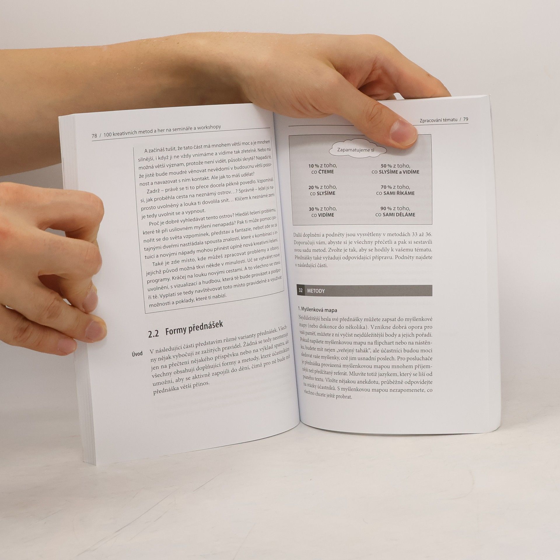 Knížka přináší 100 atraktivních metod, her a nápadů na semináře a workshopy, které nadchnou účastníky a zvýší efektivitu vzdělávání. Široké spektrum metod a her zlepší přípravu a začátek semináře, zatraktivní jeho průběh, vyhodnocení a závěr. Umožní vám zvolit správnou metodu pro jakýkoli učební typ a vhodnou formu cvičení tak, aby byl trénink efektivnější a kreativnější. U každé metody či hry se dozvíte její přednosti a účel, jasný popis, jak postupovat, různé alternativy a konkrétní příklady. Ryze praktická příručka je neocenitelným pomocníkem pro každého lektora a učitele. V knize najdete pestrou nabídku metod a her pro: - přivítání, seznámení a navázání kontaktu, - uvedení do tématu a rozplánování semináře, - organizaci a rozdělení účastníků do skupin, - kreativní cvičení a tipy pro účastníky, - vyhodnocení, zpětnou vazbu a závěr semináře