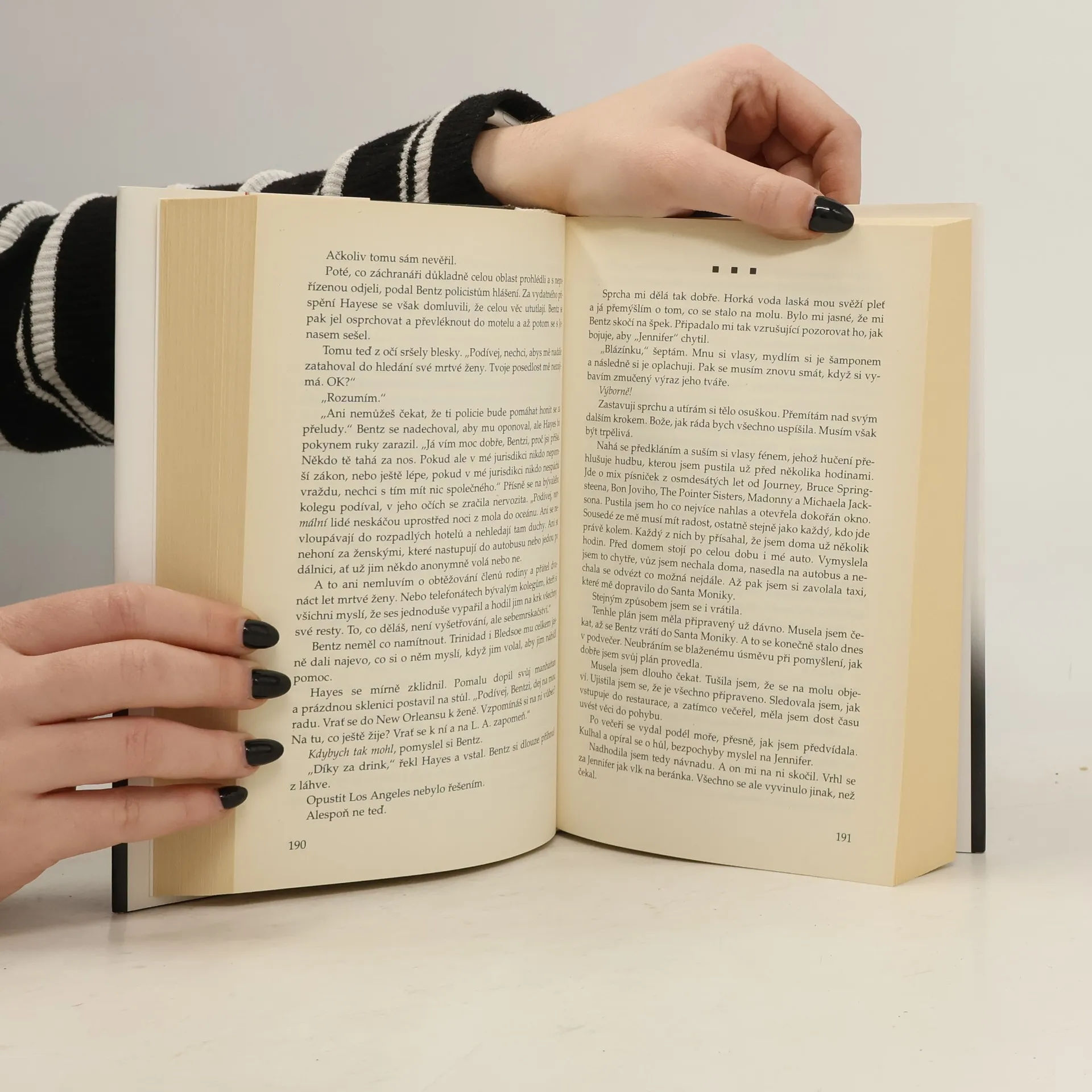 Ten parfém poznal i na nemocniční posteli, kde se zotavoval po těžké autonehodě. Používala ho jeho první žena, krásná Jennifer. Namáhavě otevřel oči a spatřil ji ve dveřích. Poslala mu vzdušný polibek a zmizela. Jenomže… nemohla to být Jennifer, protože ta zemřela před dvanácti lety. Po propuštění z nemocnice vidí Rick Bentz svou bývalou ženu všude; pokaždé se mu krátce ukáže a zase zmizí. Opravdu je naživu? Vždyť tenkrát identifikoval její tělo, poznal oblečení i snubní prsten. Nikdy o její smrti nepochyboval – až teď. A své současné ženě Olivii se svěřit nemůže: nedokázal by vyslovit nahlas svou obavu, že přichází o rozum… Ze strnulé letargie ho probere teprve Jennifeřin úmrtní list, přes nějž kdosi namaloval červený otazník. Bentz se spojí se svými bývalými kolegy v losangeleské policii a kousek po kousku dává dohromady skládačku posledních dní své exmanželky, jenom aby zjistil, že toho o ní ví proklatě málo. A pak začnou umírat lidé z Jennifeřiny minulosti a každá mrtvola jako by ukazovala na Bentze nehybným prstem. Kdo ho chce zničit? Za jaké hříchy má vlastně Bentz platit? A jakou roli přisoudil tajemný mstitel současné Bentzově ženě Olivii?