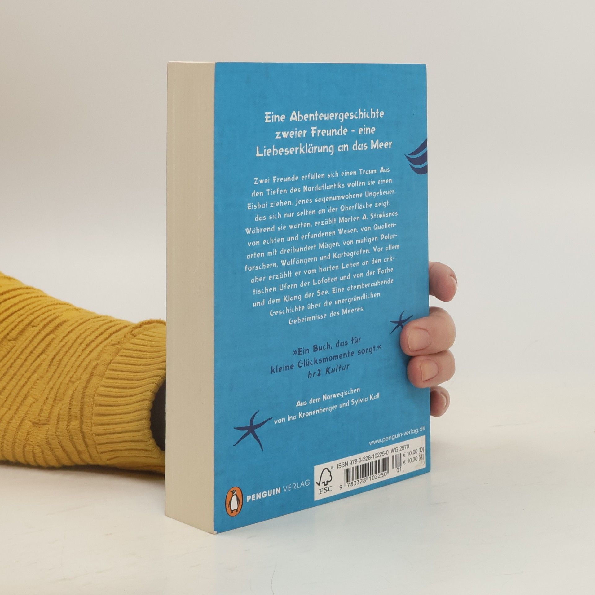 Zwei Freunde erfüllen sich einen Traum: Aus den Tiefen des Nordatlantiks wollen sie einen Eishai ziehen, jenes sagenumwobene Ungeheuer, das sich nur selten an der Oberfläche zeigt. Während sie warten, erzählt Morten A. Strøksnes von echten und erfundenen Wesen, von Quallenarten mit dreihundert Mägen, von Seegurken und Teufelsanglern. Von mutigen Polarforschern, Walfängern und Kartografen und natürlich vom harten Leben an arktischen Ufern, vom Skrei, der Generationen das Überleben auf den Lofoten sicherte, von der Farbe und dem Klang des Meeres. Eine salzige Abenteuergeschichte über das Glück, den Naturgewalten zu trotzen – und ein atemberaubendes Buch, das uns staunen lässt über die unergründlichen Geheimnisse des Meeres.